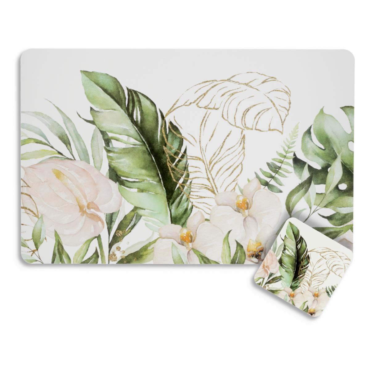 consultando preciosSet De Individuales Ramas Tropicales Con Portavaso...
