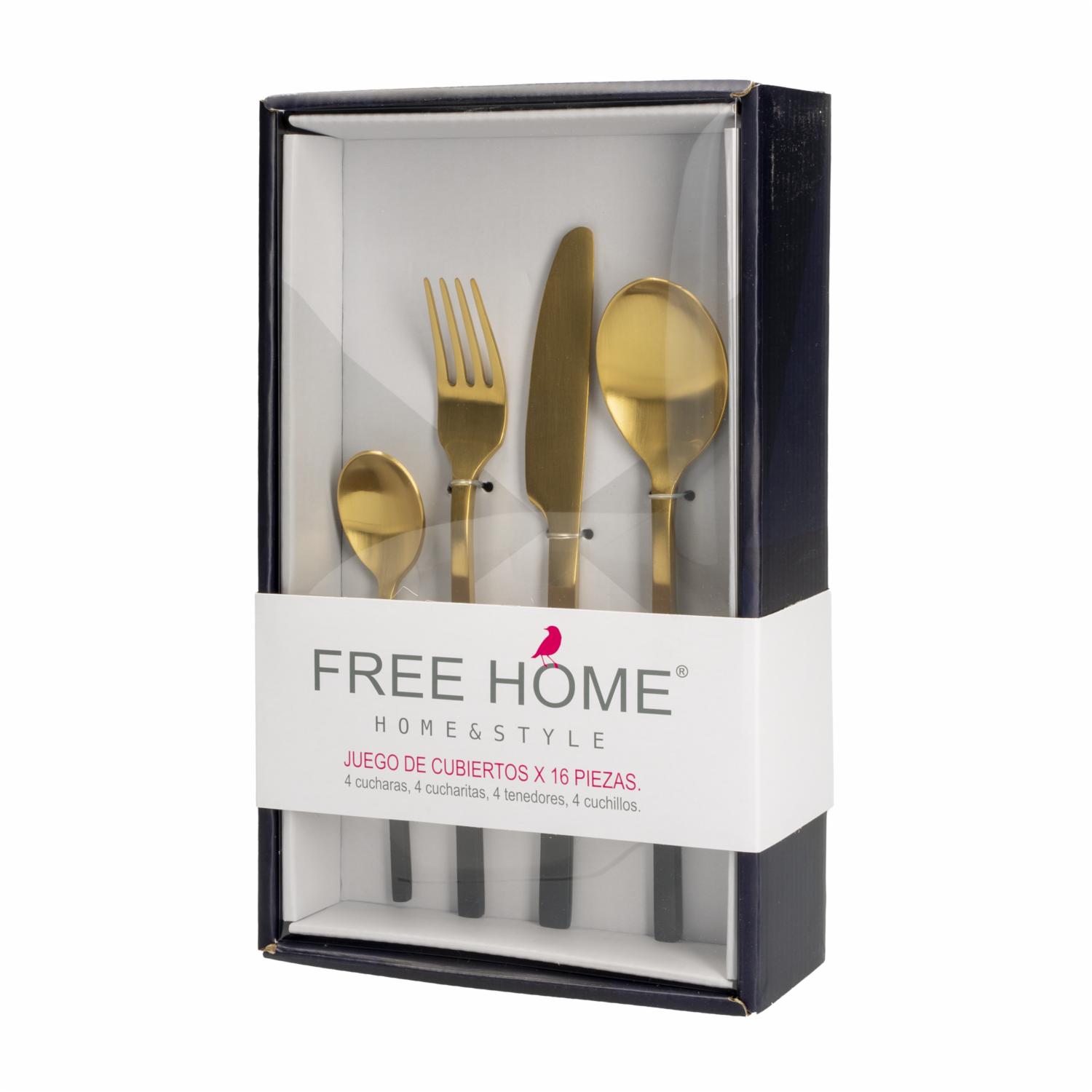 consultando preciosJuego De Cubiertos Color Dorado Mate Con Mango Neg...