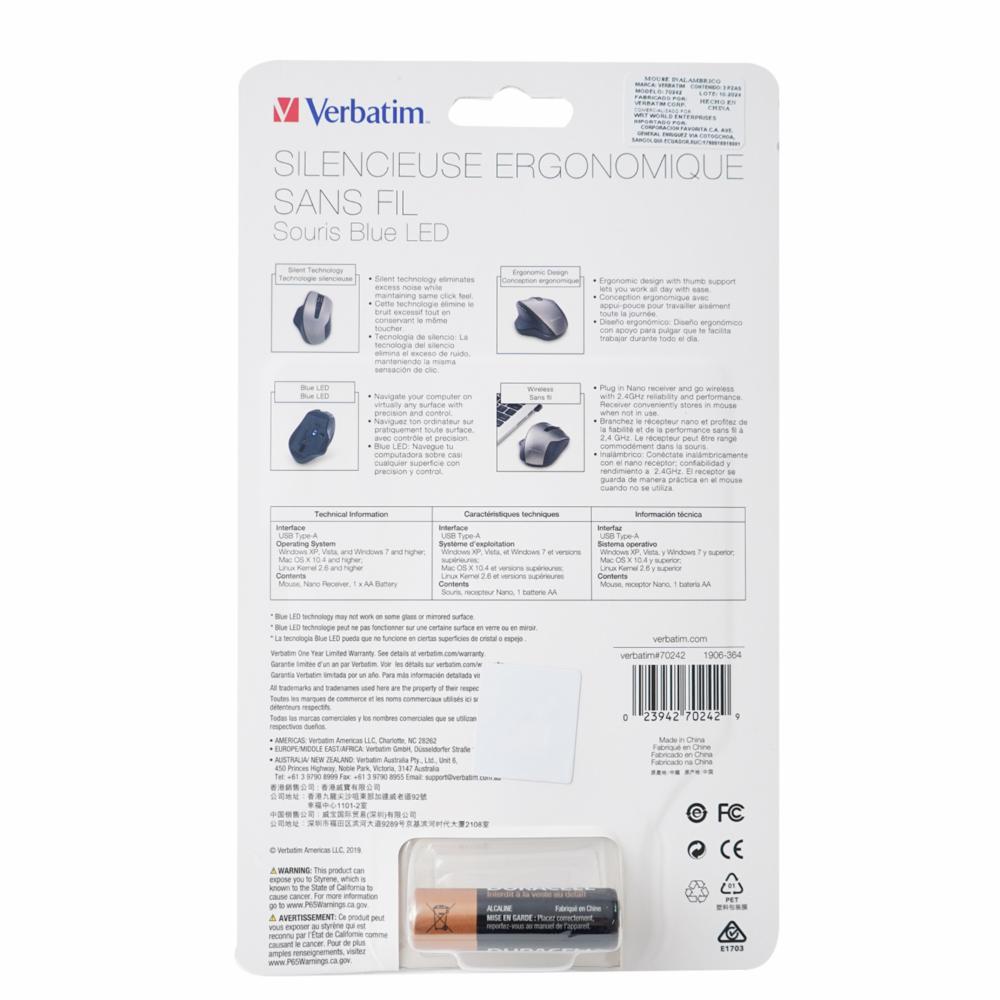 Mouse Silent Ergo Wrls Blue Led Graphite VERBATIM Wireless – VERBATIM. Disponible en nuestros locales. Precio y stock pueden variar según la tienda.