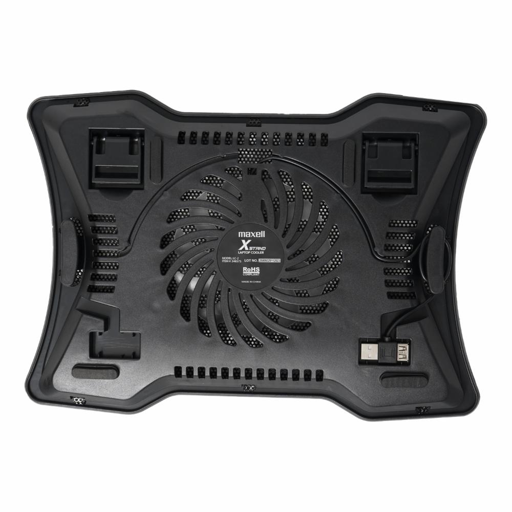 • Características: Mejora la posición de la pantalla y permite la ventilación del portátil Compatible con equipos de hasta 15 pulgadas Construcción en plástico ABS y rejilla metálica Abanico silencioso con iluminación roja Maxell Cable con puerto USB hembra para no perder conectividad Previene el sobrecalentamiento y mejora la ergonomía