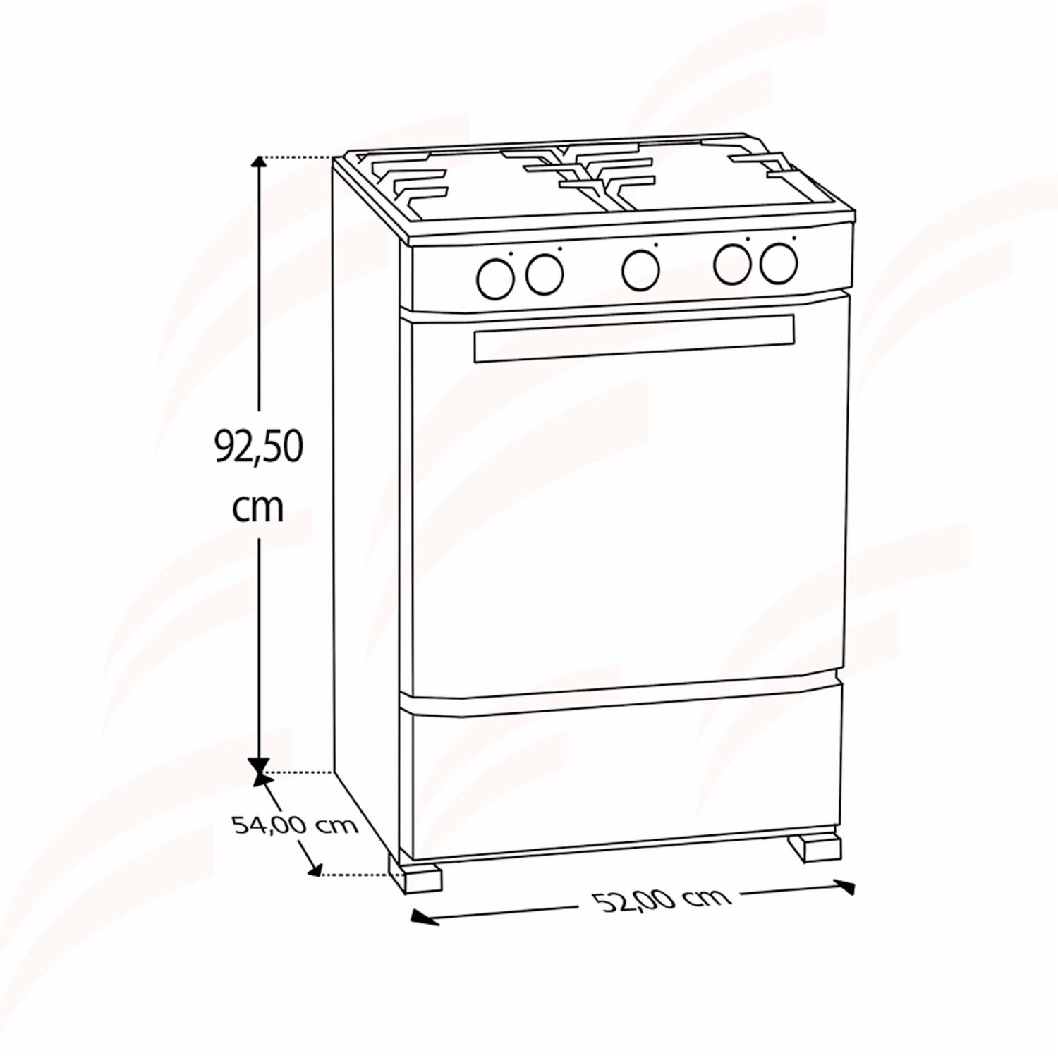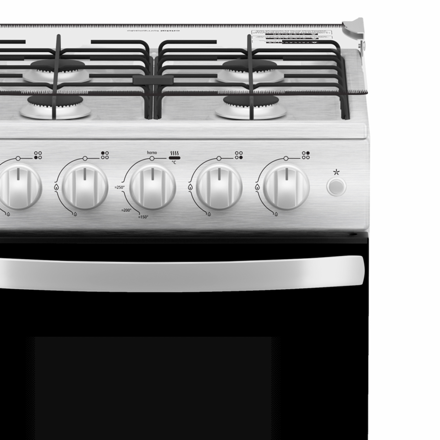 - Cocina a gas de 4 quemadores, con encendido eléctrico, cubierta de acero inoxidable y tapa de cristal templado. Cuenta con un amplio horno con sistema de termocontrol y puerta panorámica