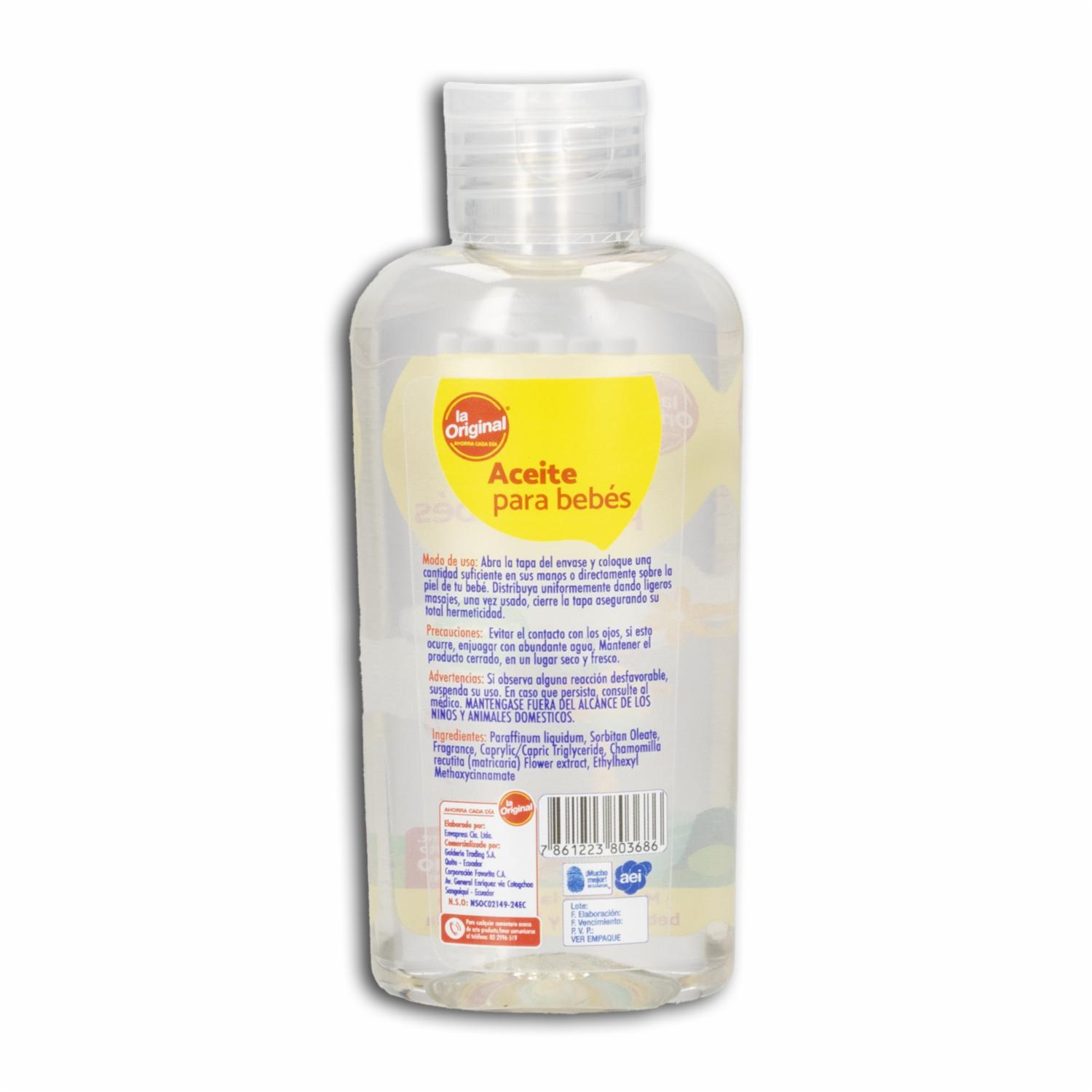Aceite Corporal Para Bebé LA ORIGINAL 110 Ml – LA ORIGINAL. Disponible en nuestros locales. Precio y stock pueden variar según la tienda.