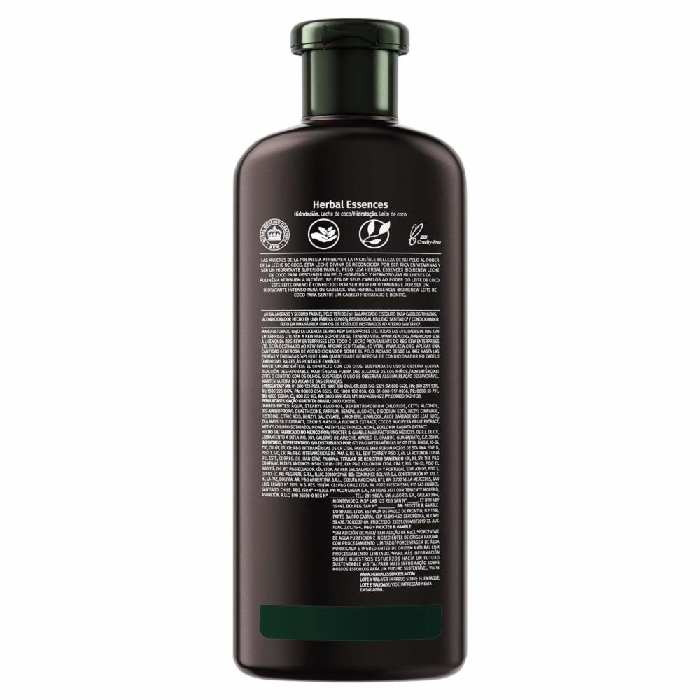 Hidrata Para Un Pelo Suave Y Sedoso El Acondicionador Herbal Essences Leche De Coco Está Especialmente Inspirado En La Naturaleza Para Hidratar Tu Pelo Contra La Resequedad Volviéndolo Más Manejable Y Luciendo Lleno De Vida. *porcentaje De Agua Purificada E Ingredientes De Origen Natural Con Procesamiento Limitado. **sin Adición De Nacl