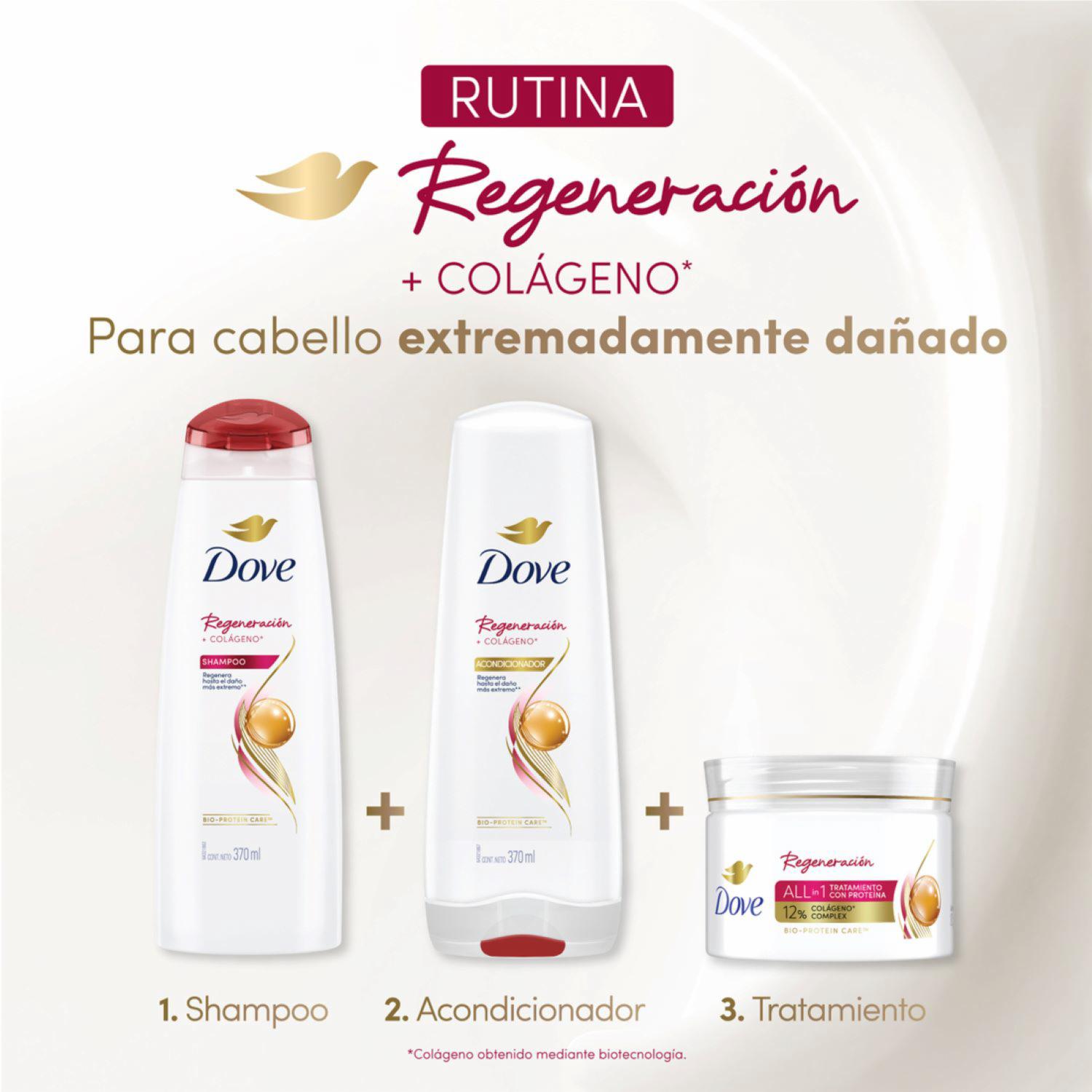 - Dove Regeneración Extrema es la solución para recuperar la belleza de tu cabello. Su fórmula avanzada con ingredientes activos regenera desde el primer uso, limpiando y reconstruyendo la estructura interna. Ideal para uso diario, nutre y repara el daño extremo por tratamientos químicos