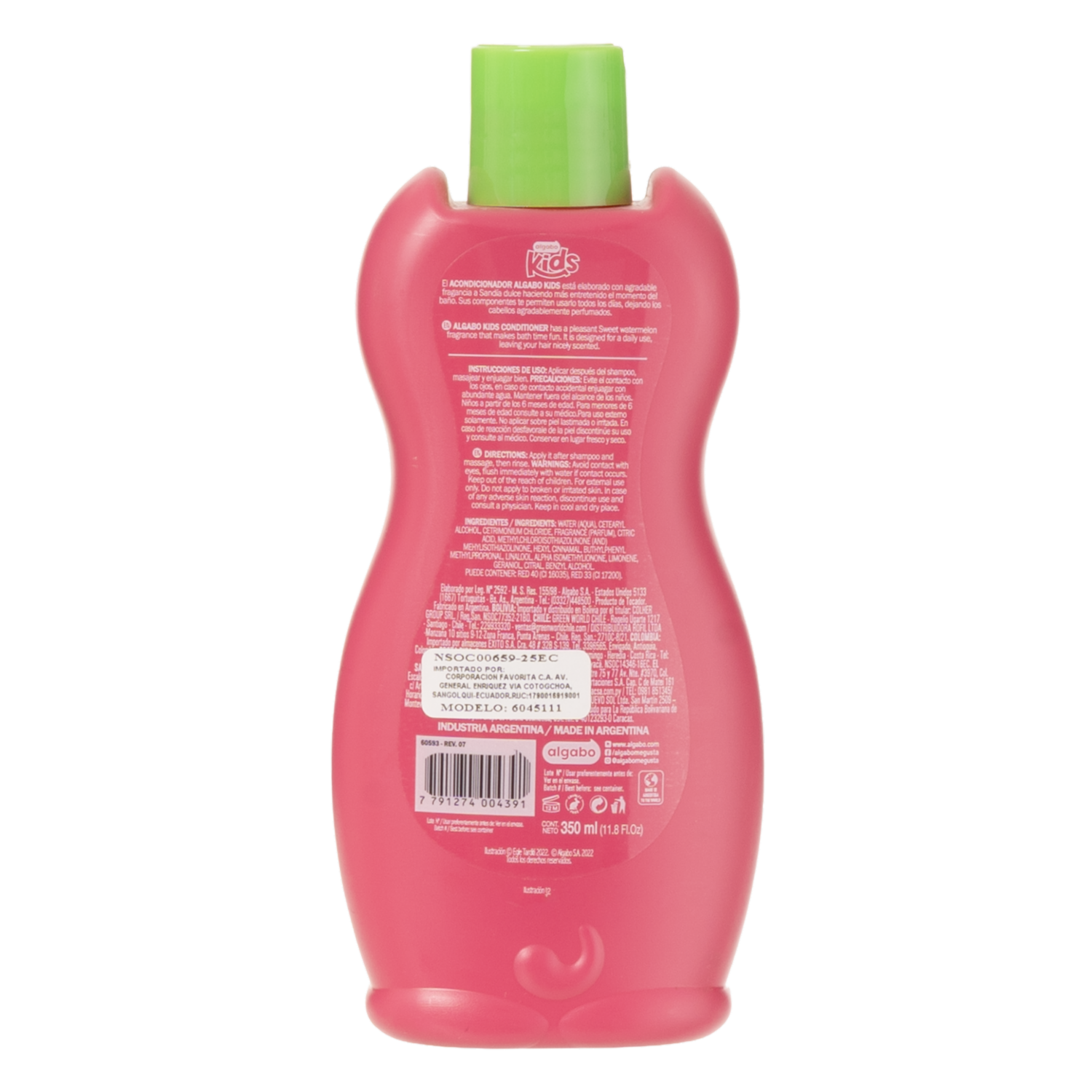 Acondicionador De Cabello De Niños Sandía Dulce Hipoalergénico ALGABO 350 Ml
