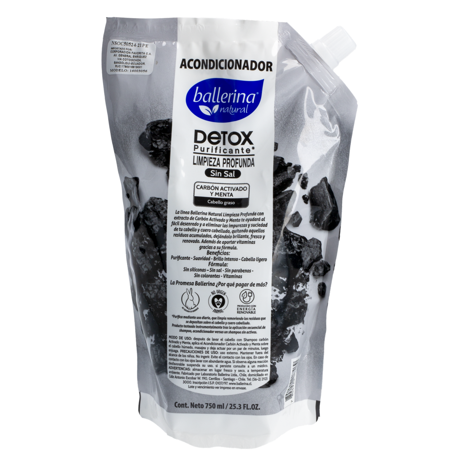 Acondicionador De Cabello Detox Purificante Carbón Activado Y Menta Doypack BALLERINA 750 Ml