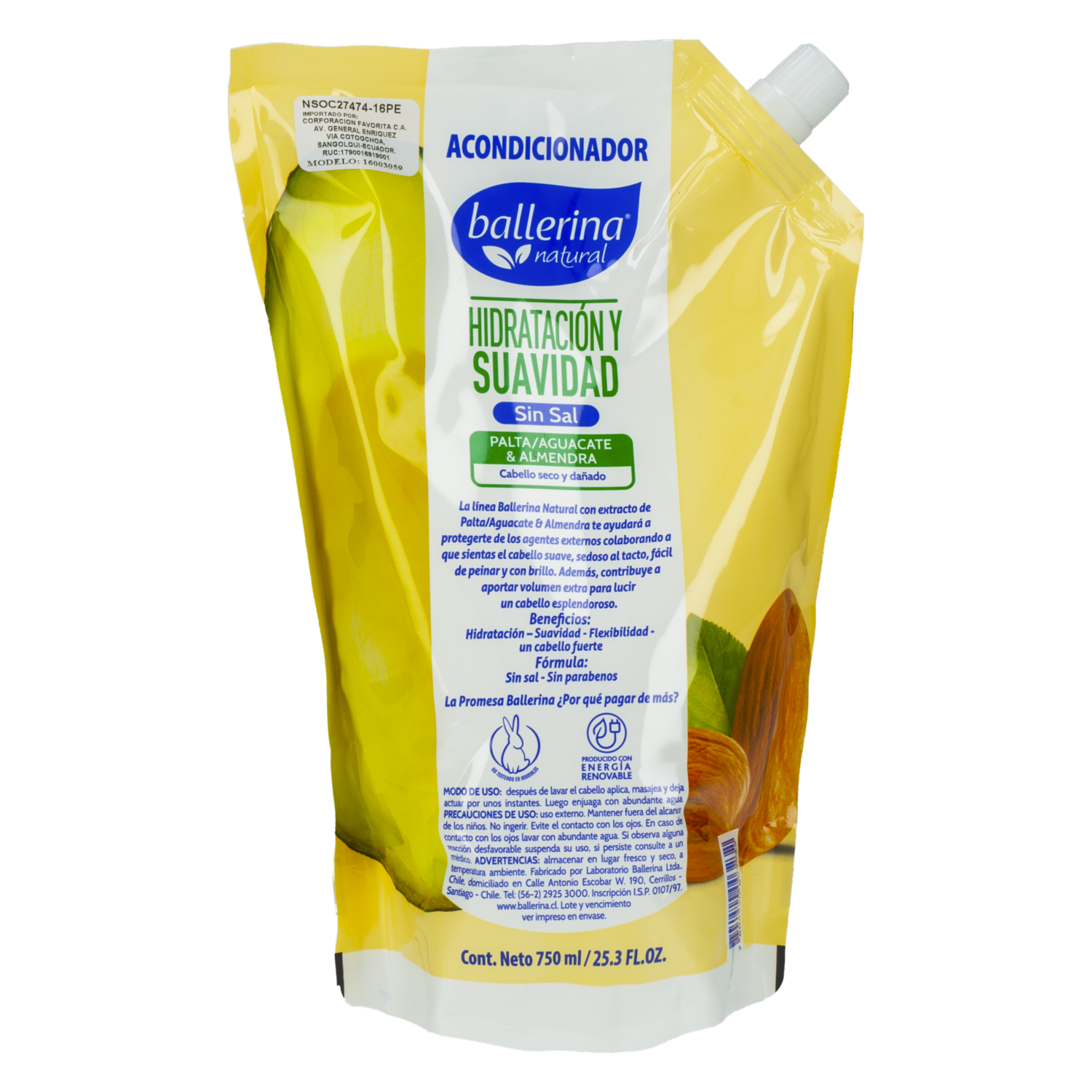 Acondicionador De Cabello Sin Sal Palta Y Almendra Doy Pack BALLERINA 900 Ml
