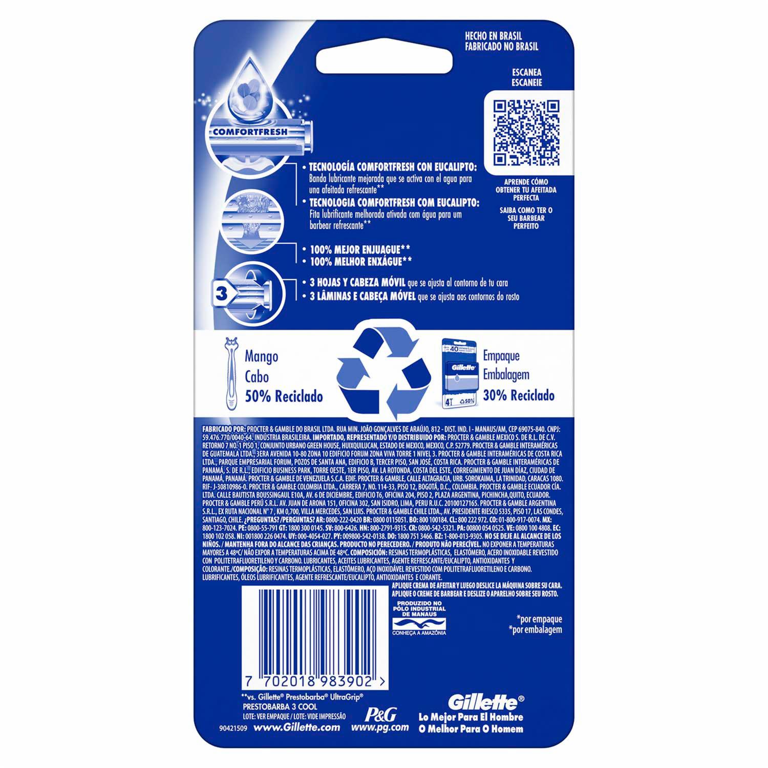 Afeitadora Desechable Prestobarba 3 Fresh Con Eucalipto GILLETTE X 4 Uds
