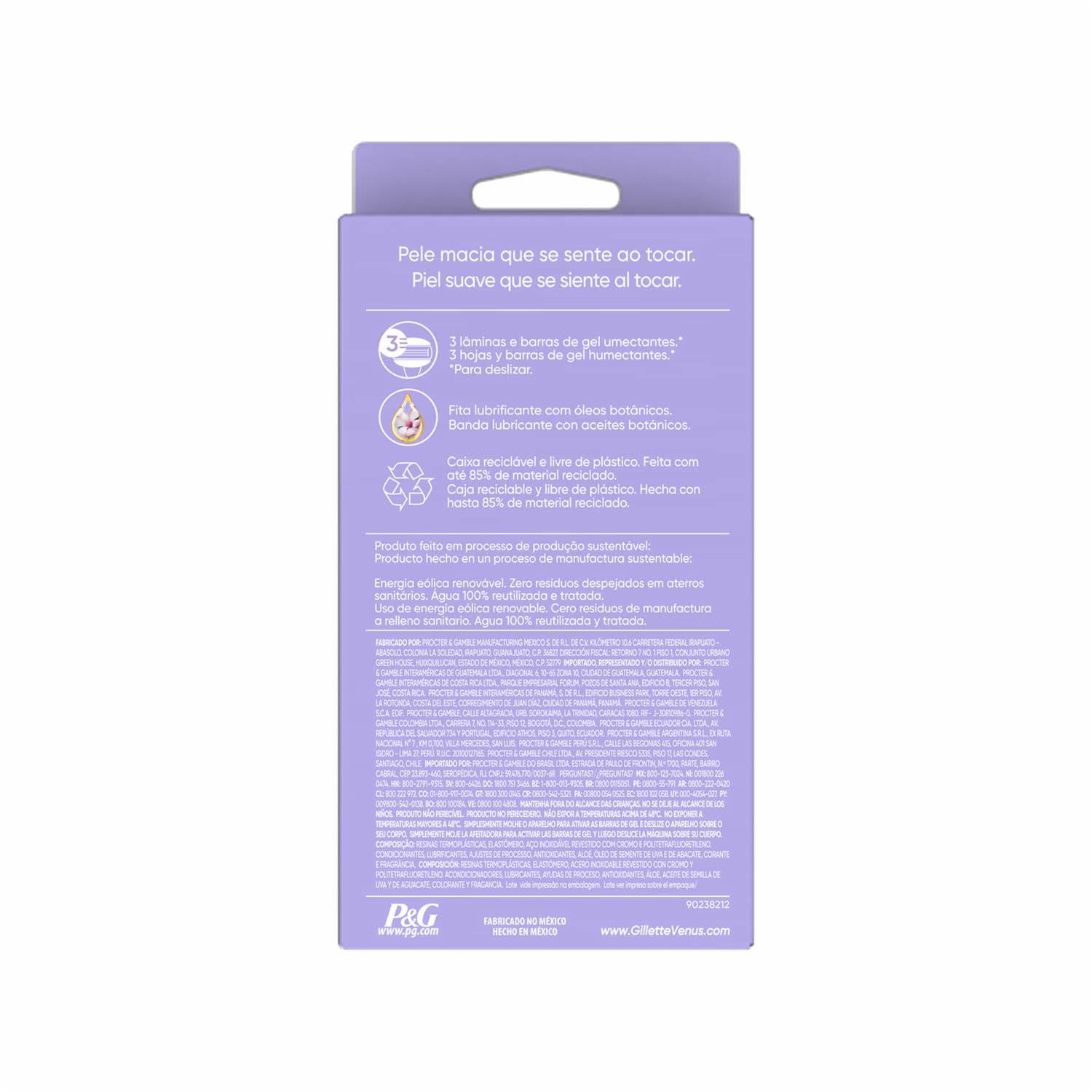 - Tiene 3 Hojas Y Barras De Gel Integradas Flexibles Que Se Adaptan A Las Curvas De Tu Cuerpo Para Una Depilación Suave Y Al Ras; Y Ahora Con Una Fragancia Floral Para Una Experiencia Increíble,¡simplemente Moja La Afeitadora Para Activar Las Barras De Gel Y Listo! Una Depilación Suave, Fácil Y Rápida