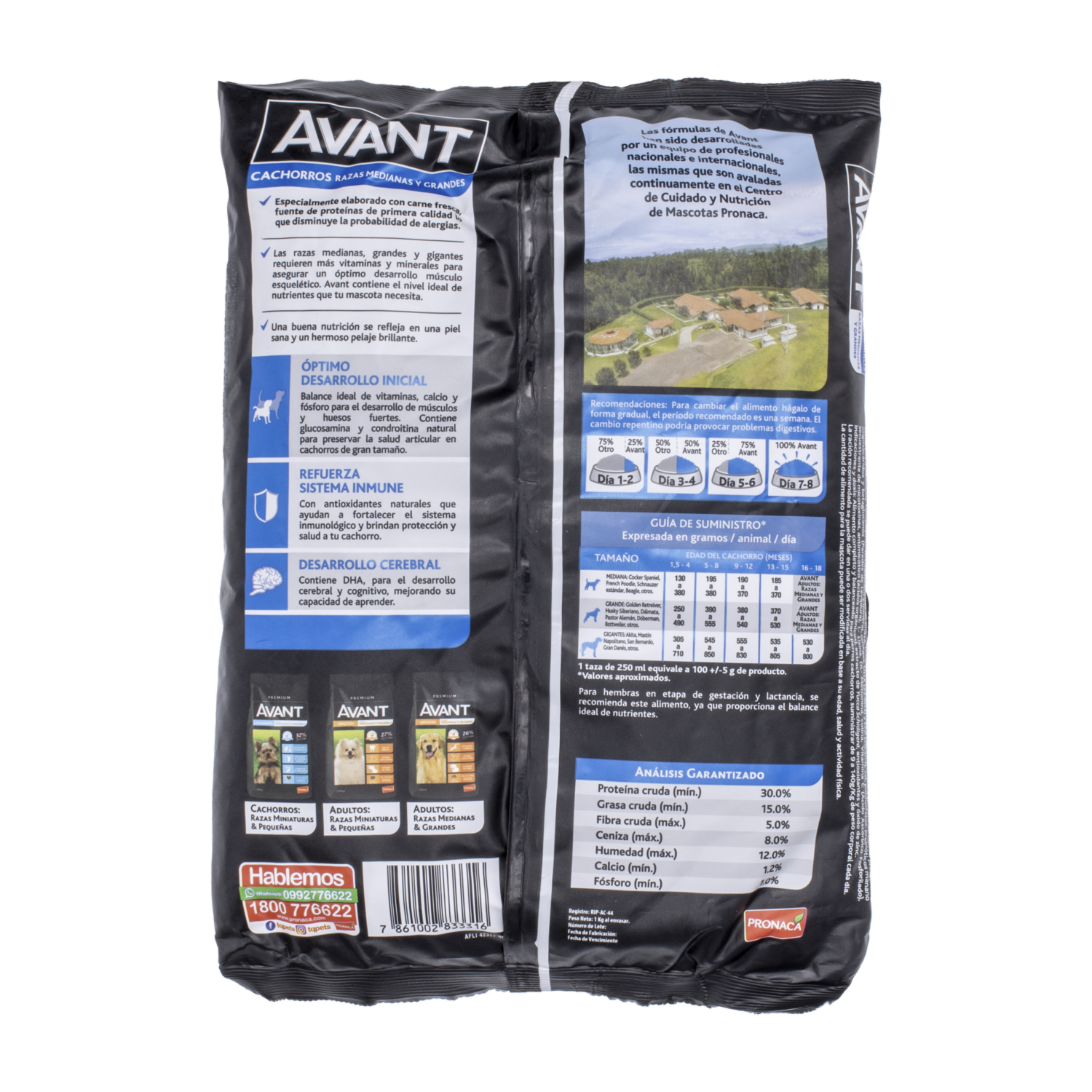 - La comida para cachorros medianos y grandes de AVANT en una presentación de 1,000 gramos ofrece un balance ideal de vitaminas, calcio y fósforo que promueve el desarrollo de músculos y huesos fuertes en tu cachorro