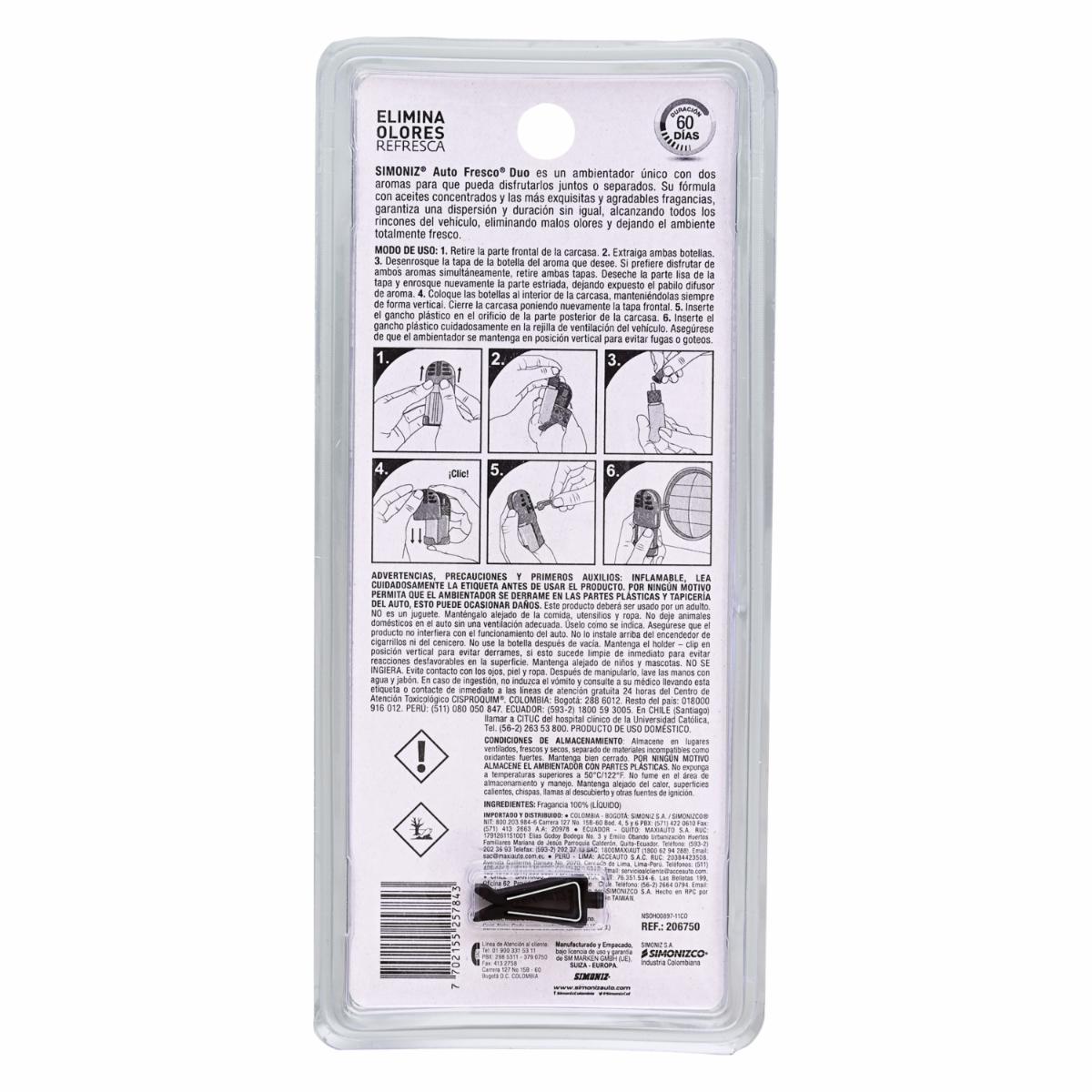 - Ambiental De Automóvil Duo Fresco Mad/Cuer SIMONIZ Unidad