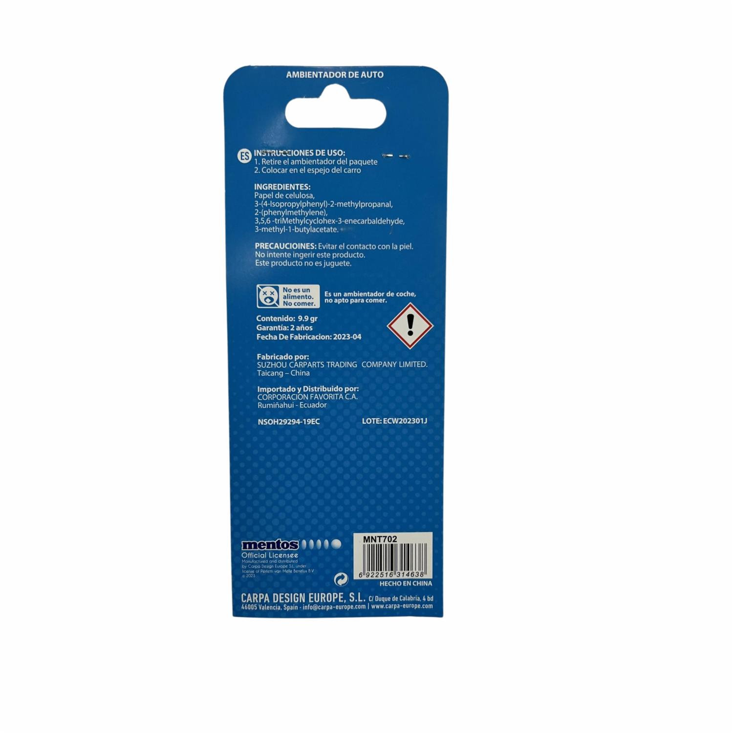 Ambiental Para Auto Fragancia Menta MENTOS Unidad