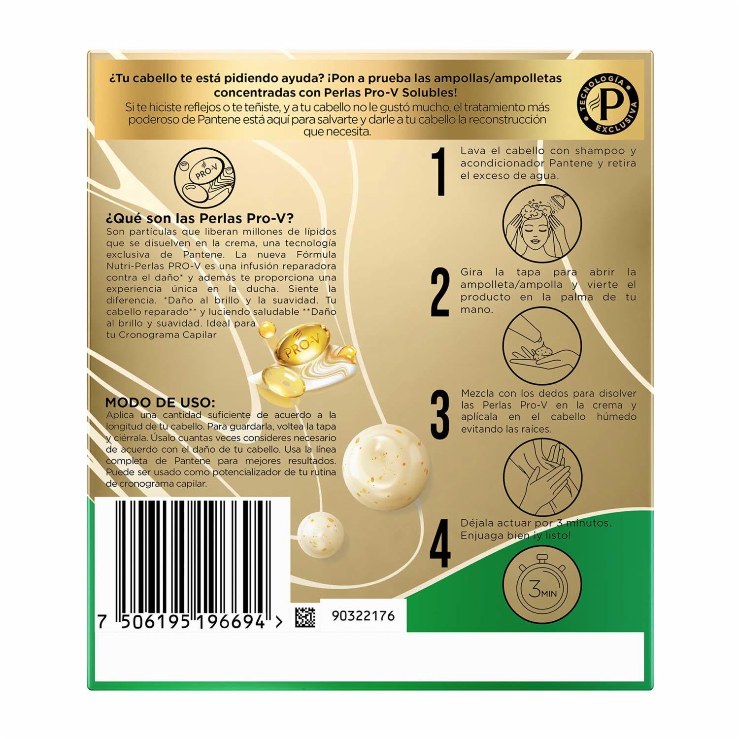 • El Tratamiento Más Poderoso De Pantene Es Ideal Para Aquellos Momentos En Que Tu Cabello Necesita Una Reconstrucción Intensa. su Fórmula Con Perlas Pro-v Solubles Y Aminoácido Tiene 3x Más Poder De Reparación**
