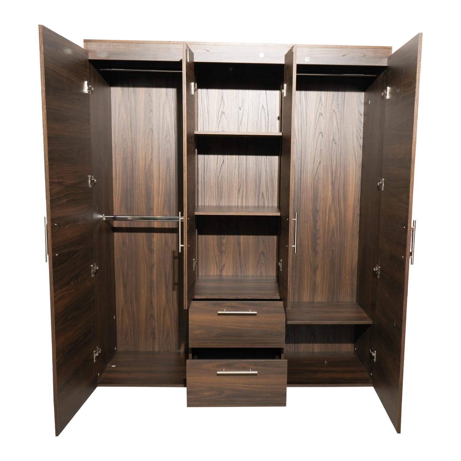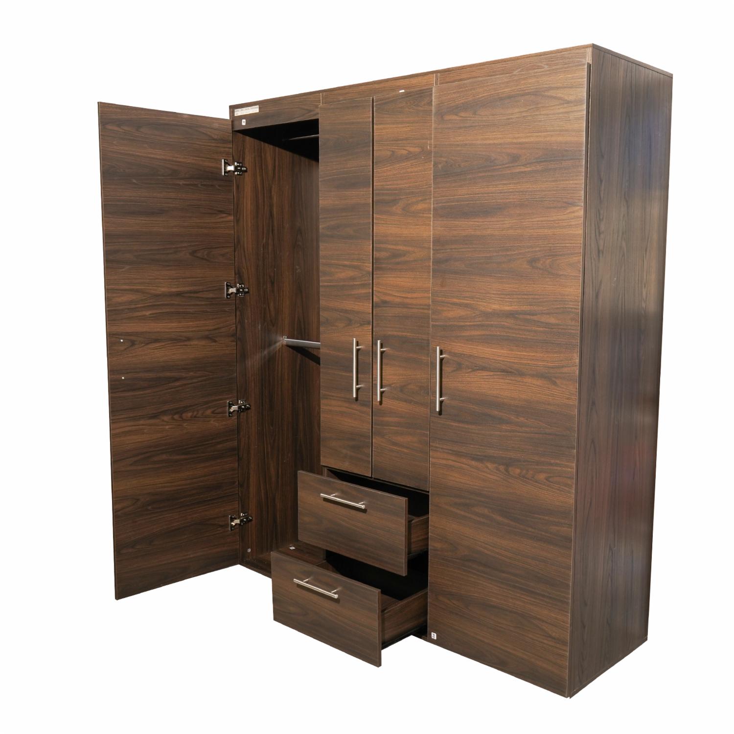 - ¡Estilo y funcionalidad en un solo mueble! Su acabado en color nogal y diseño amplio lo convierten en la opción perfecta para organizar tu ropa con elegancia.