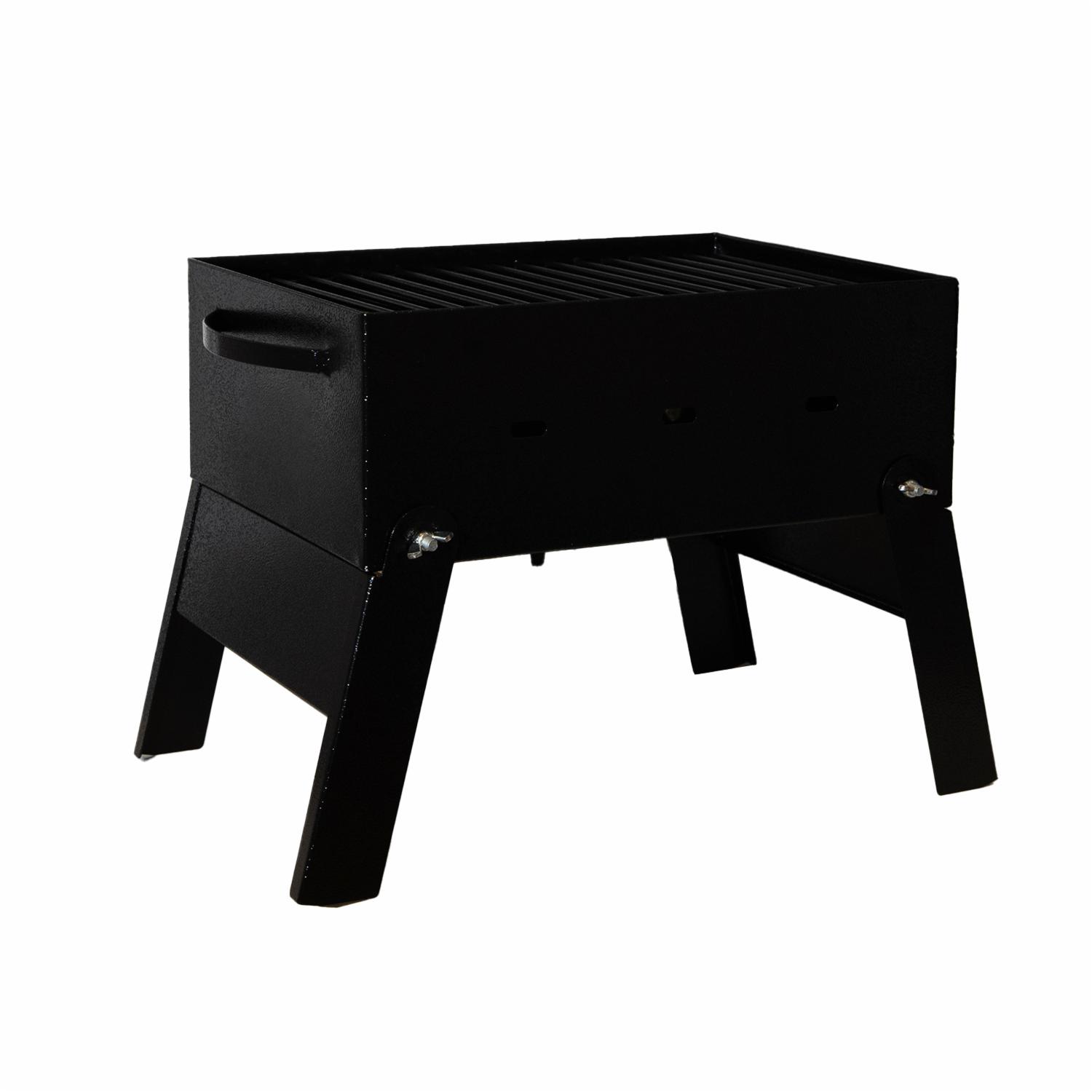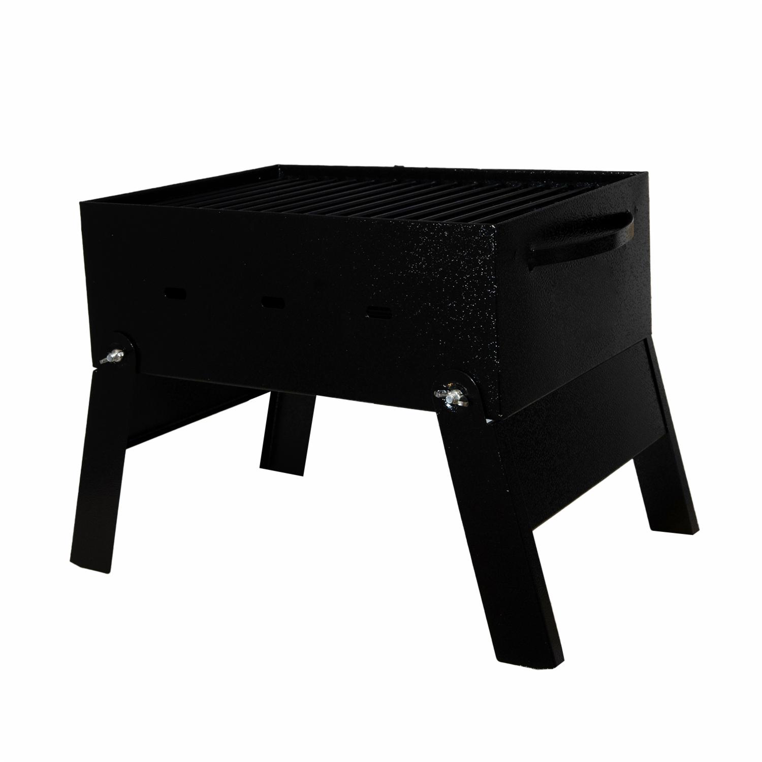 - Características: - Diseño plegable: Facilita el almacenamiento y transporte, ideal para llevar en tus salidas de picnic o camping. - Material de acero negro: Asegura resistencia y durabilidad para un uso prolongado