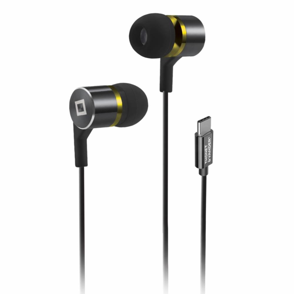 Audífonos in-ear Thonet & Vander Klein con micrófono integrado, cuerpo de aluminio y cable resistente. Diseño ergonómico para mayor comodidad y calidad de sonido. Características: - Modelo: HK096-03658 - Tipo de conexión: USB Tipo-C - Micrófono: Integrado - Material del cuerpo: Aluminio - Cable: De alta resistencia - Diseño: In-ear ergonómico - Tamaños de gel incluidos: Sí - Compatibilidad: Dispositivos con puerto USB Tipo-C