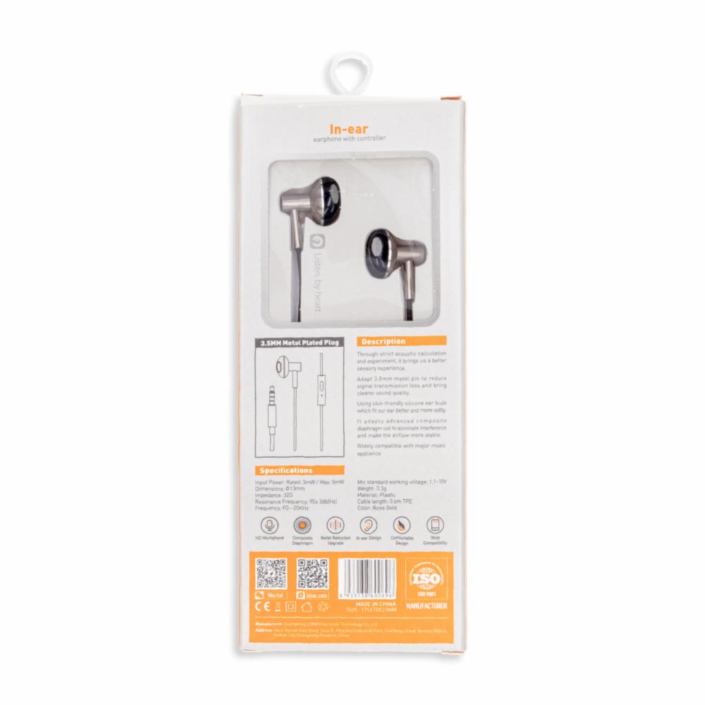 • Características: - Modelo: IN Ear HP09 - Auricular interno con controlador: Ofrece un sonido claro y balanceado, ideal para escuchar música o realizar llamadas