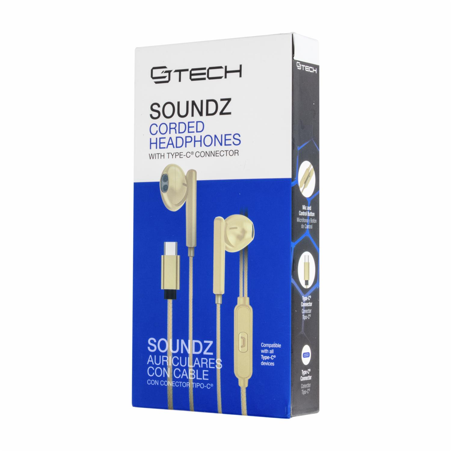 Disfruta de un sonido excepcional en cualquier momento con los auriculares SOUNDZ. Estos auriculares ofrecen una potente reproducción de bajos y un excepcional aislamiento de ruido para una increíble experiencia de sonido. Características:: - Conector: Type-C® - Diámetro de Parlante: 14mm - Sensibilidad: 42±3dB - Impedancia: 32±15% - Rango de Frecuencia: 18Hz20kHz - Longitud de Cable: 1.11.2m