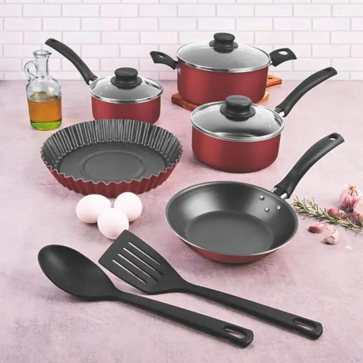 Batería De Cocina Rojo TRAMONTINA 7 Piezas