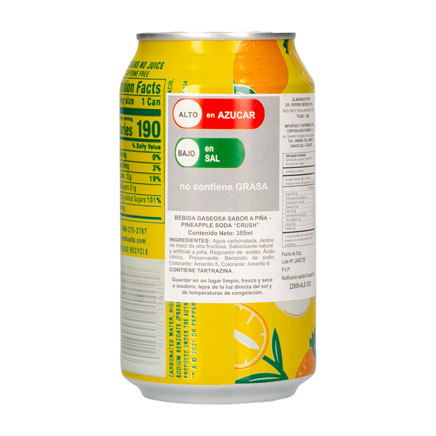 Bebida Gaseosa En Lata Sabor A Piña CRUSH 355 Ml