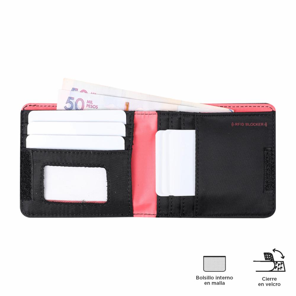 Lleva tus documentos y dinero a donde vayas con tu nueva billetera para hombre mediana, Dagoba. Está hecha en 100% poliéster, y su estilo es de dos cuerpos