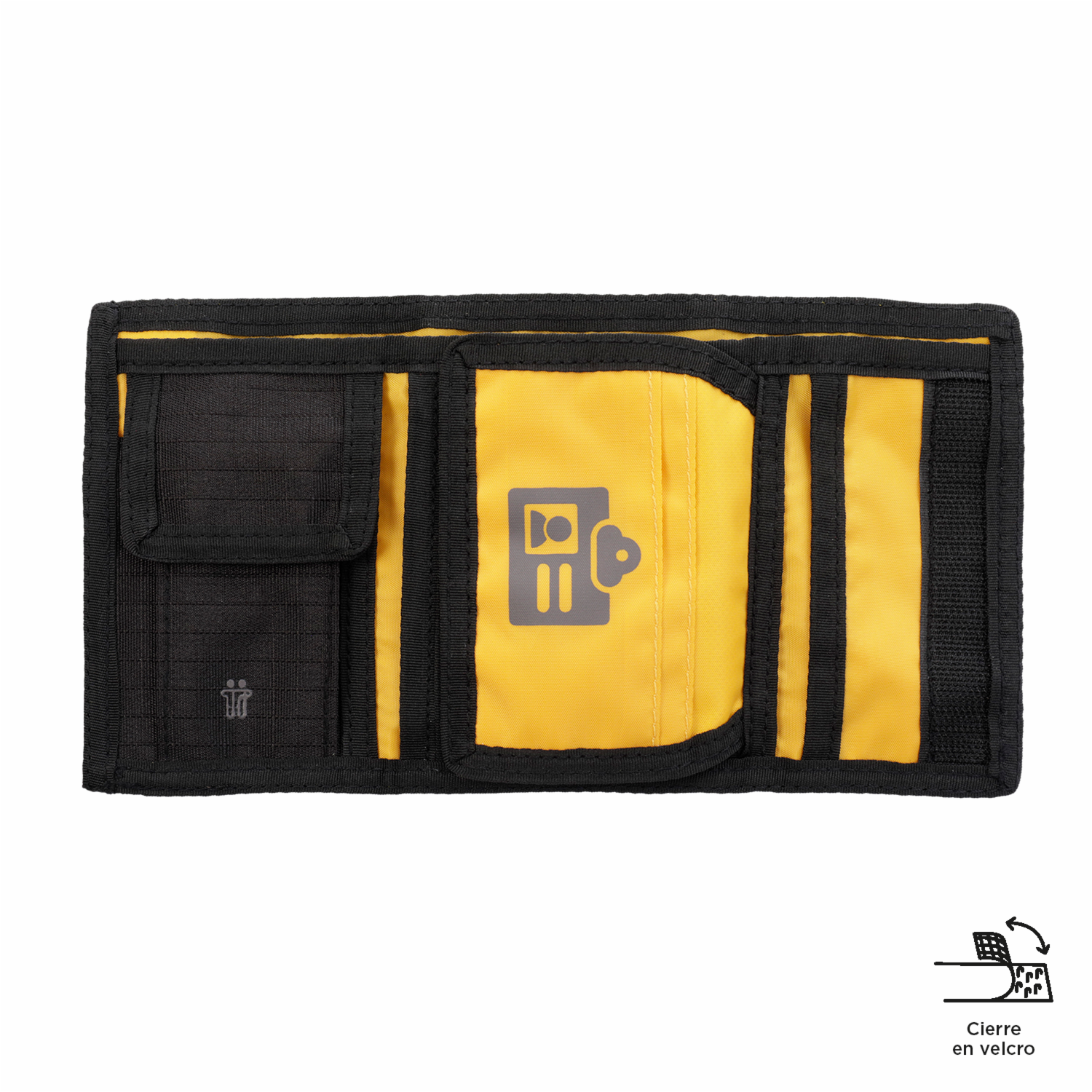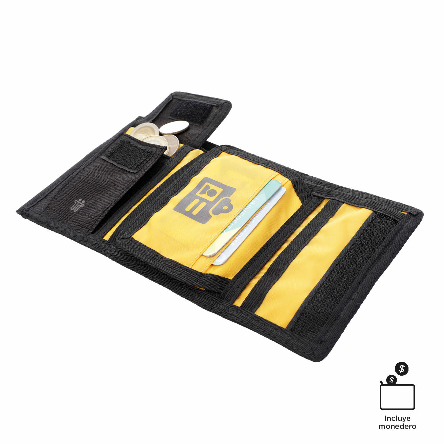 • Es amplia, práctica y segura. Cuenta con tres cuerpos con cierre en velcro, diez organizadores para tarjetas, uno para billetes y un monedero