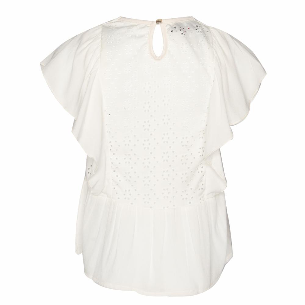 Blusa de algodón con vuelos que aportan un toque femenino y delicado. Su diseño ligero y fresco es ideal para looks casuales y cómodos. Perfecta para combinar con pantalones o faldas