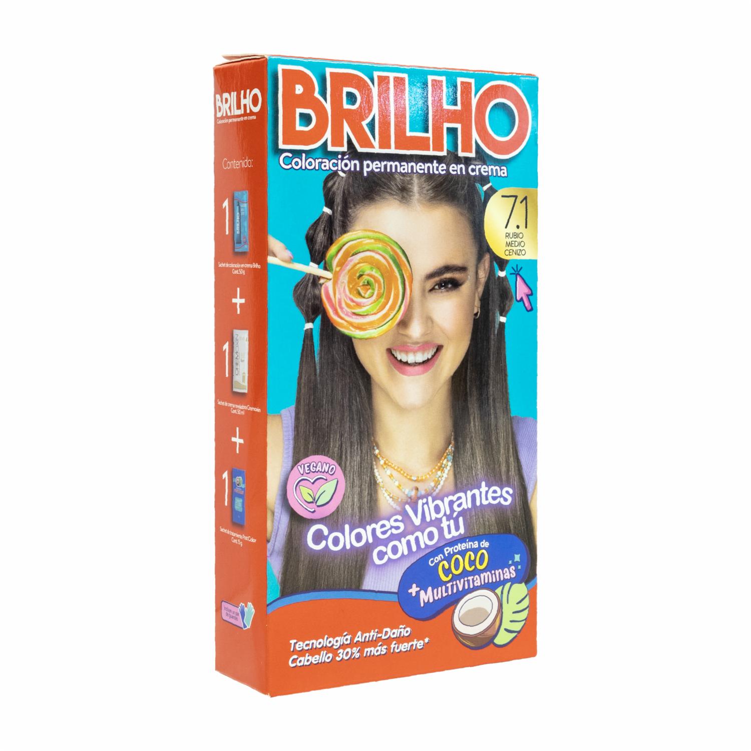 Tinte De Cabello Rubio Medio Cenizo Tono 7.1 BRILHO 50 G – BRILHO. Disponible en nuestros locales. Precio y stock pueden variar según la tienda.