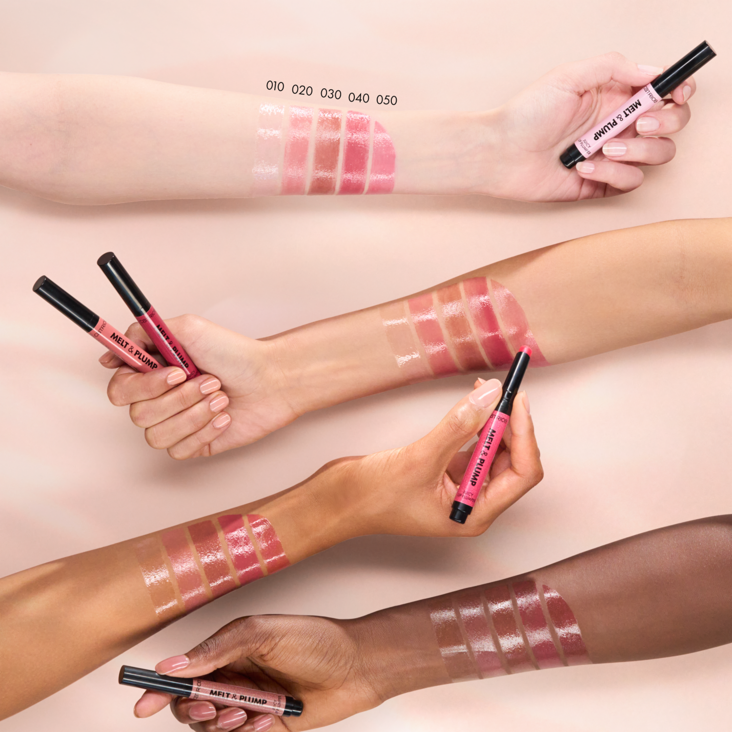- Volumen con solo unos clics: el voluminizador Melt & Plump Juicy Lip Plumper 010 More Amore de Catrice proporciona un tono rosa suave al instante, así como brillo y volumen. Su textura suave se desliza fácilmente sobre los labios y deja un agradable efecto refrescante gracias al mentol. Enriquecido con Maxi-Lip, la fórmula hidrata y proporciona volumen a los labios para conseguir un acabado impresionante en un instante