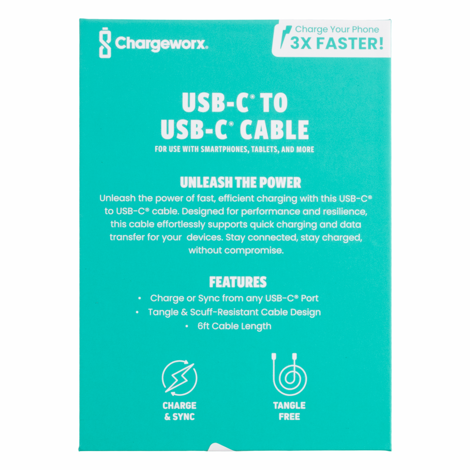 Cable De Carga Ráida Usb-C A Usb-C 6 Pies CHARGE WORX 60 W