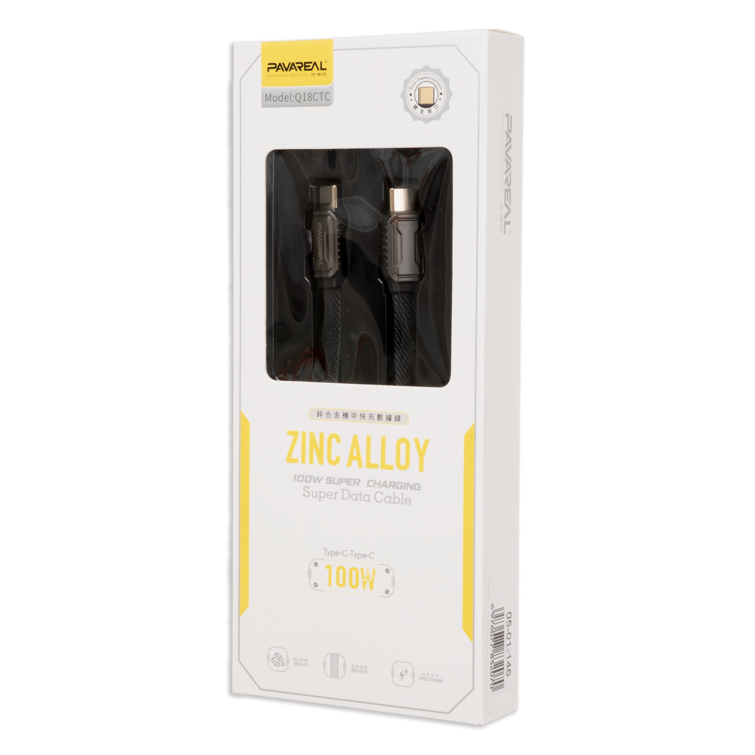 Cable De Datos Tipo C A Tipo C Con Aleación De Zinc Q18Ctc PAVAREAL 100 W