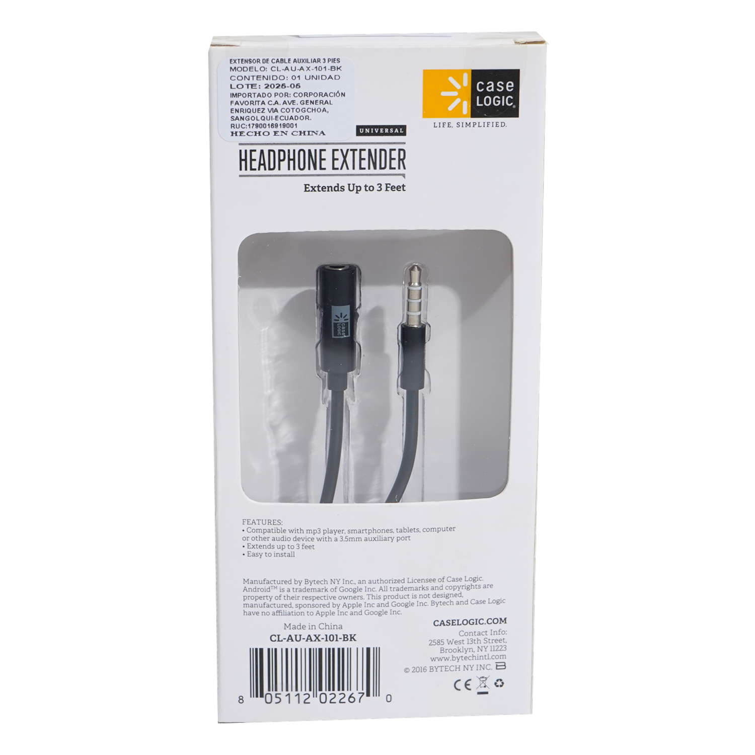 - Amplía la conexión de tus audífonos de manera práctica con el cable de extensión CASE LOGIC. Ideal para usar con smartphones, computadoras, tablets y reproductores de música, garantiza una transmisión de audio clara y estable mientras te da mayor libertad de movimiento