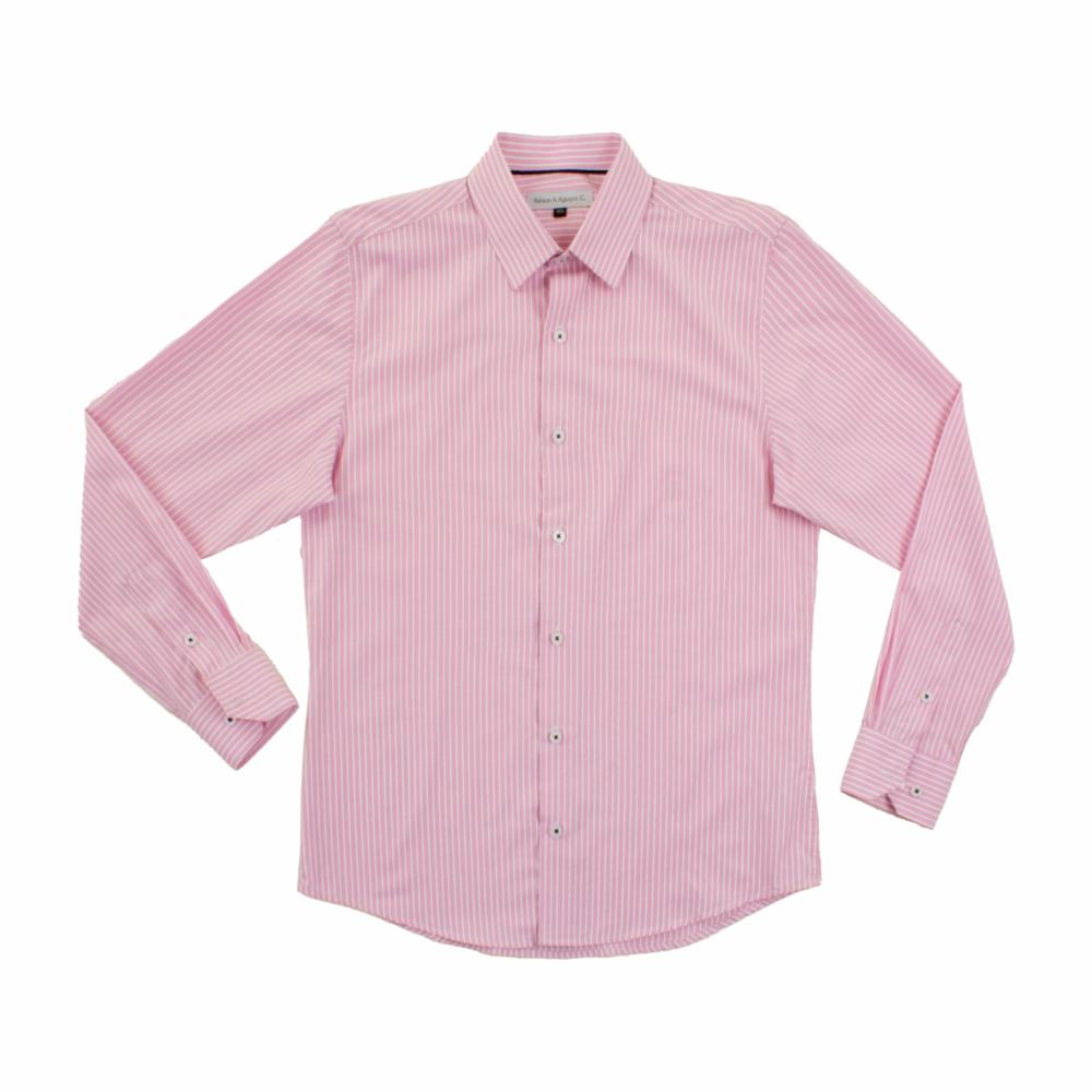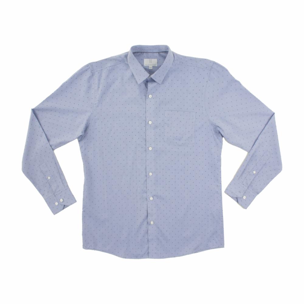 Esta camisa de manga larga en tono celeste presenta un elegante diseño de puntos, ideal para un estilo refinado y casual a la vez
