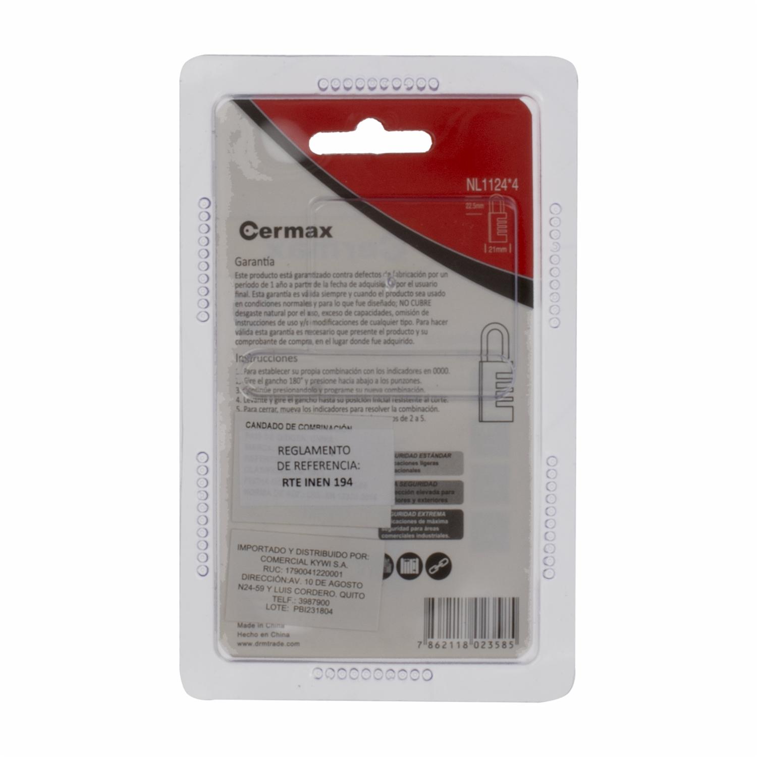 Candado De Combinación 4 Dígitos 21 Milímetros CERMAX Unidad