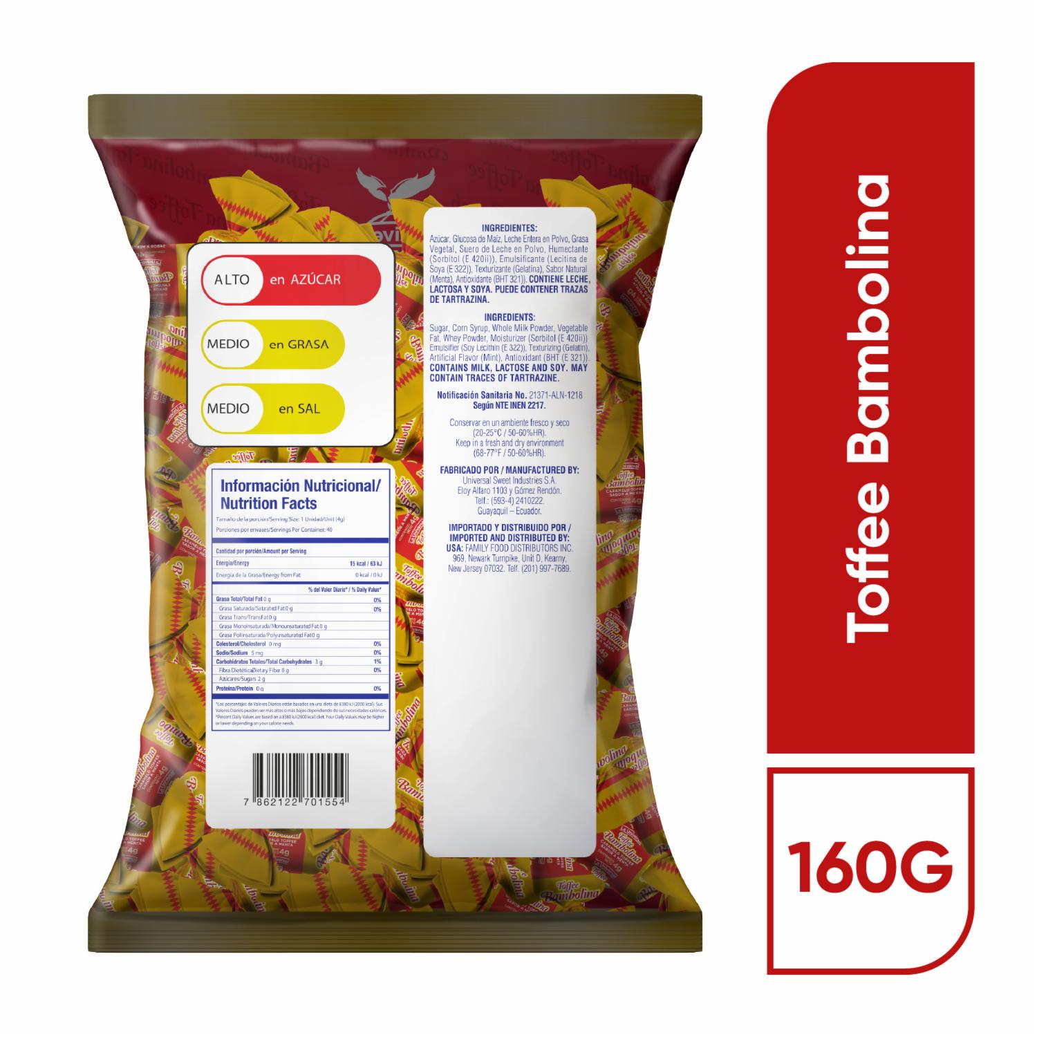 consultando preciosCaramelos Toffe BAMBOLINA 160 G – BAMBOLINA. Disponible en nuestros locales. Precio y stock pueden variar según la tienda.
