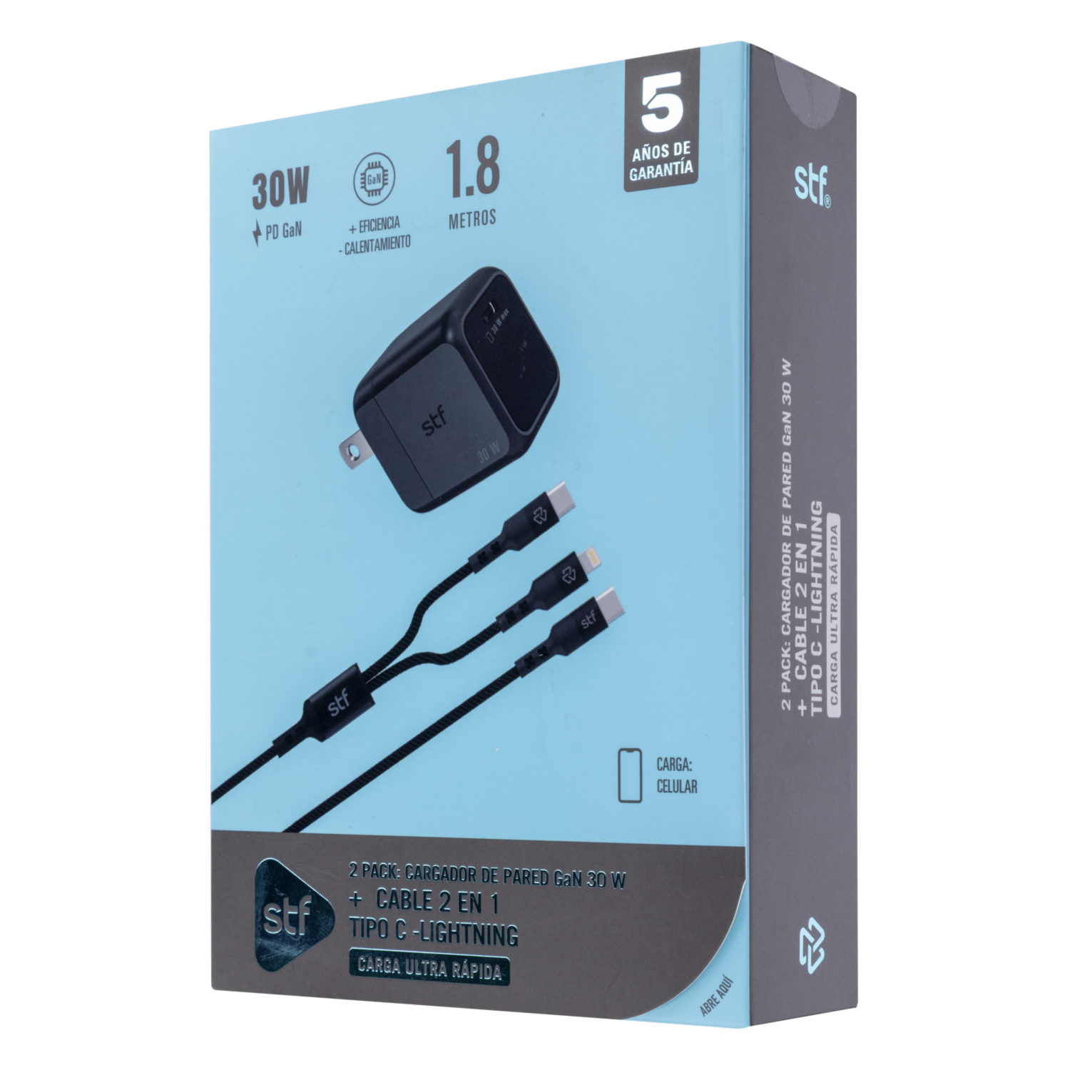 Cargador Gan 30W 3A + Cable 2 En 1 STF 30 W