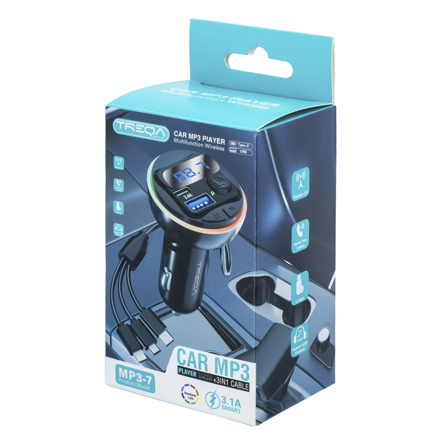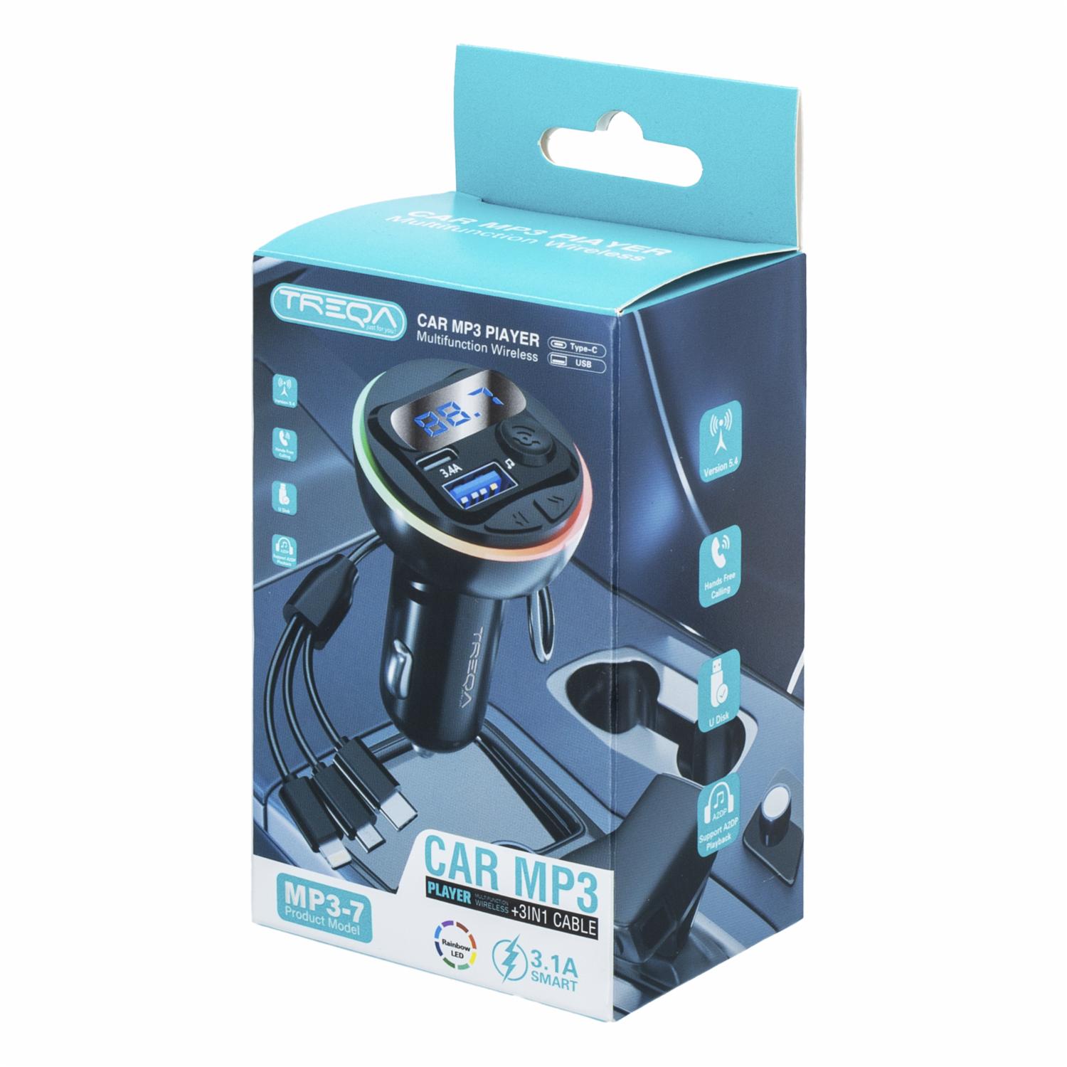Cargador Para Auto 3 En 1 MP3-7 TREQA 3,1 A