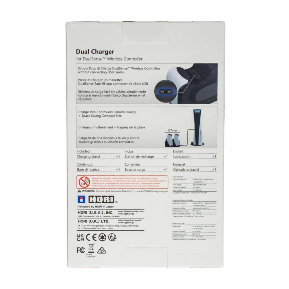 • Es compatible con controles inalámbricos DualSense. Otras referencias no son compatibles. ¡Carga simultáneamente hasta dos controles con el cargador dual Hori!
