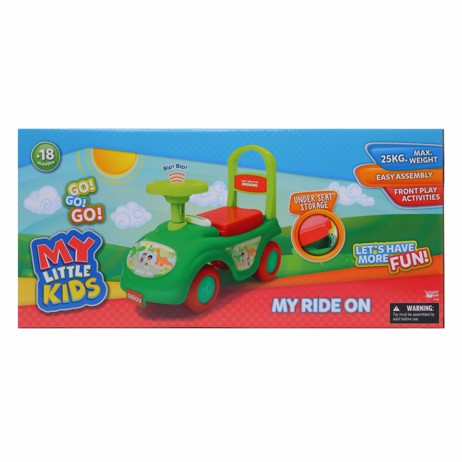 En el carrito paseador happy line, el primer montable de 4 ruedas ligero fácil de ensamblar. Sus ruedas en plástico proporcionan un relajante paseo donde tu pequeño puede desarrollar habilidades motrices y agilidad al caminar. Además, tiene manija en el espaldar para que los papás halen el niño haciéndolo a avanzar, en el baúl ubicado debajo de la silla podrá guardar todos tus juguetes. Fortalece la fuerza del cuerpo de tu hijo: manos y piernas, estimula los sentidos mientras se divierte