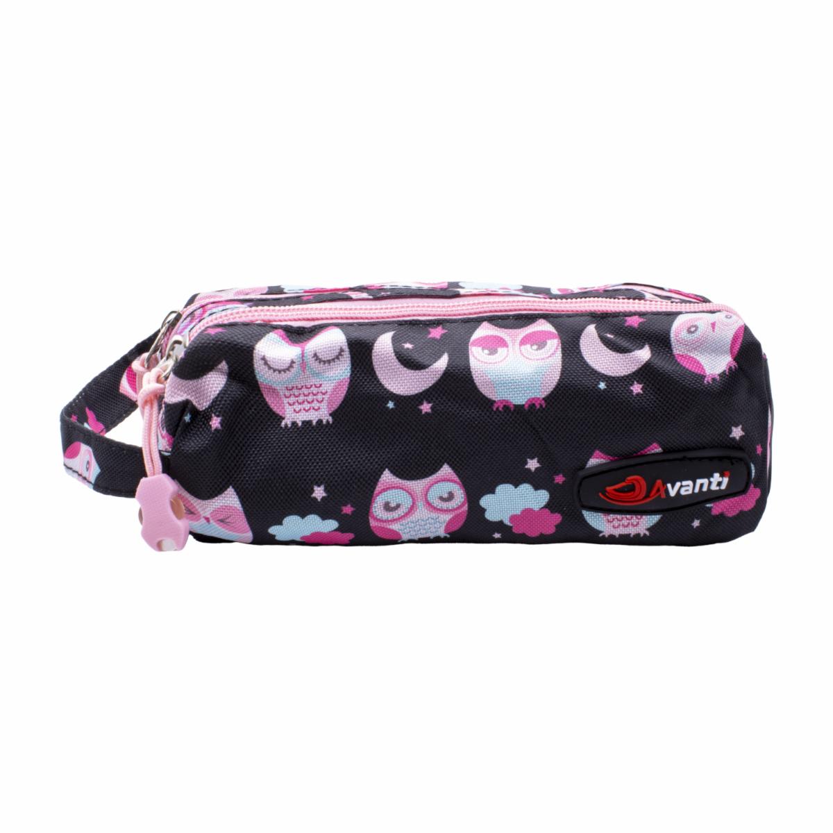 Cartuchera 2 Cierres De Búho Negra Con Rosa – Con Agarradera AVANTI Pequeño