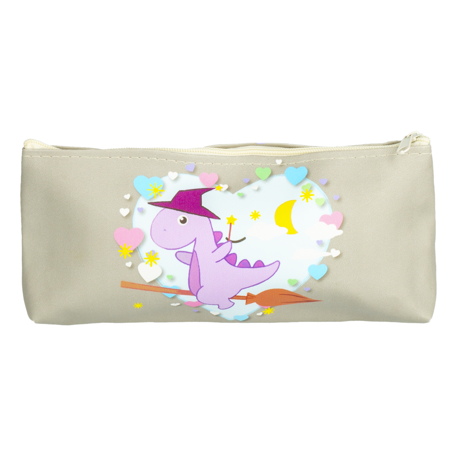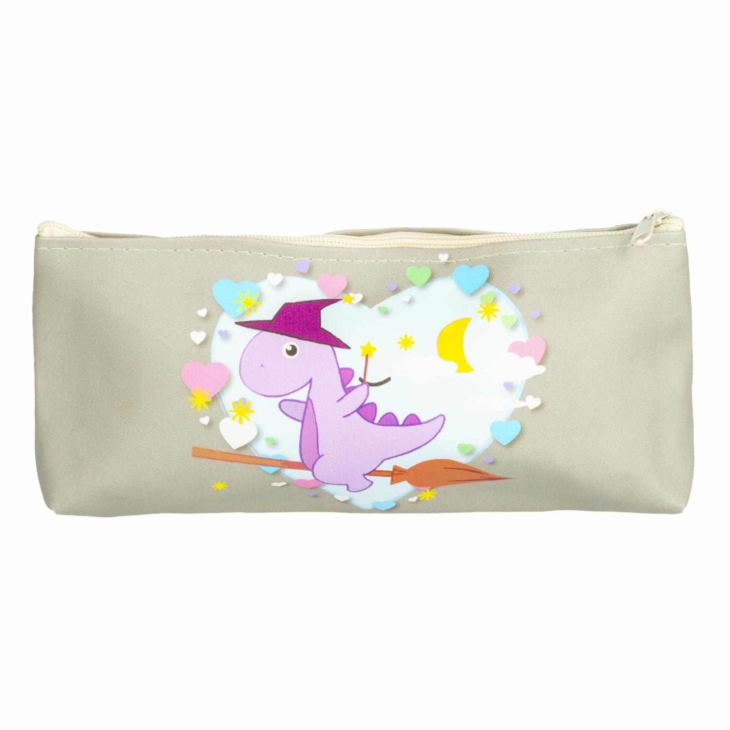 - Añade un toque de aventura prehistórica a la rutina escolar con esta cartuchera de diseño único. Su color beige y estampado de dinosaurios la hacen atractiva y divertida para los más pequeños. Compacta y funcional, mantiene los útiles organizados y al alcance