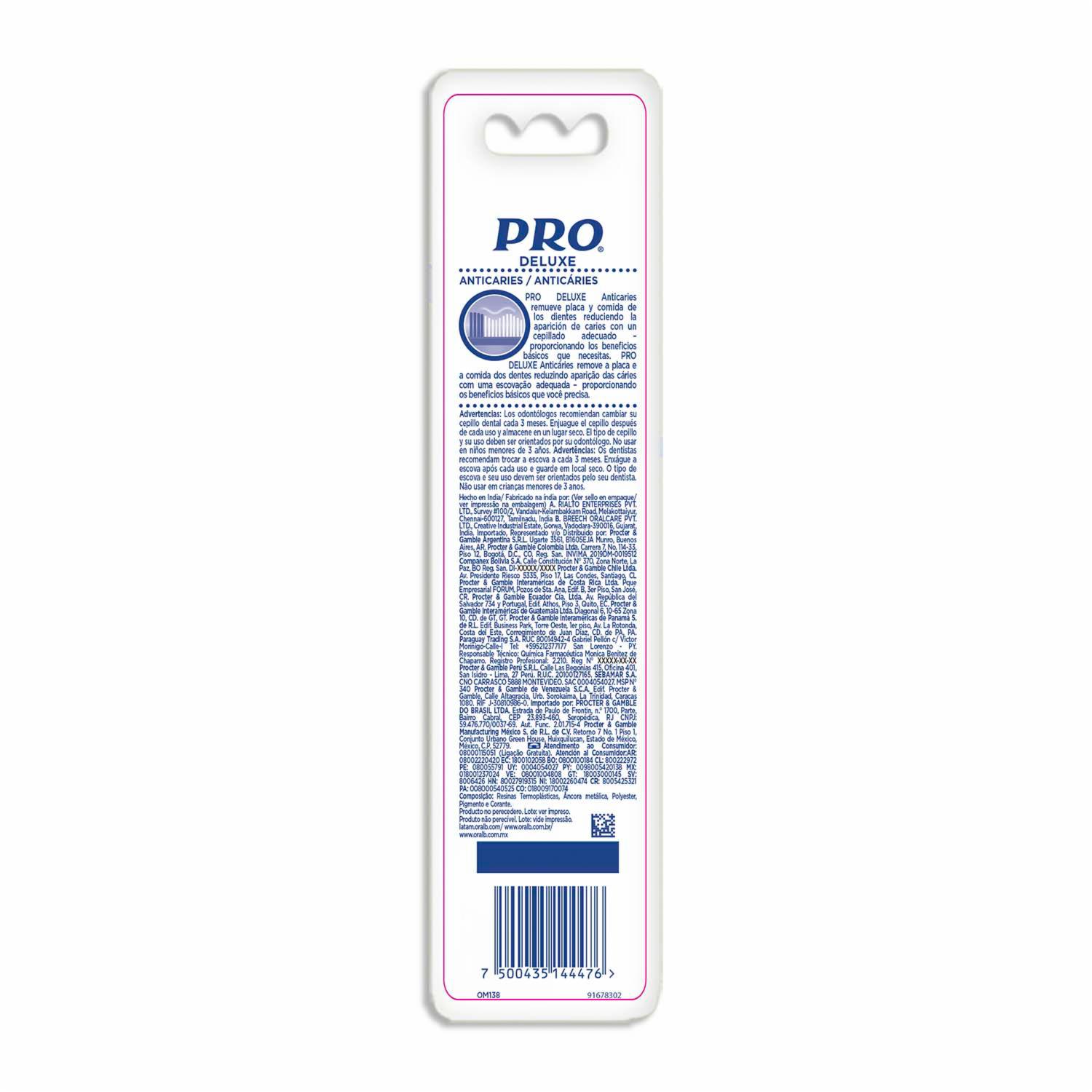 - Pro Deluxe Anticaries Limpia Tu Boca Y Ayuda A Prevenir Las Caries. Remueve Placa Y Comida De Los Dientes Reduciendo La Aparición De Caries Con Un Cepillado Adecuado ? Proporcionando Los Beneficios Básicos Que Necesitas