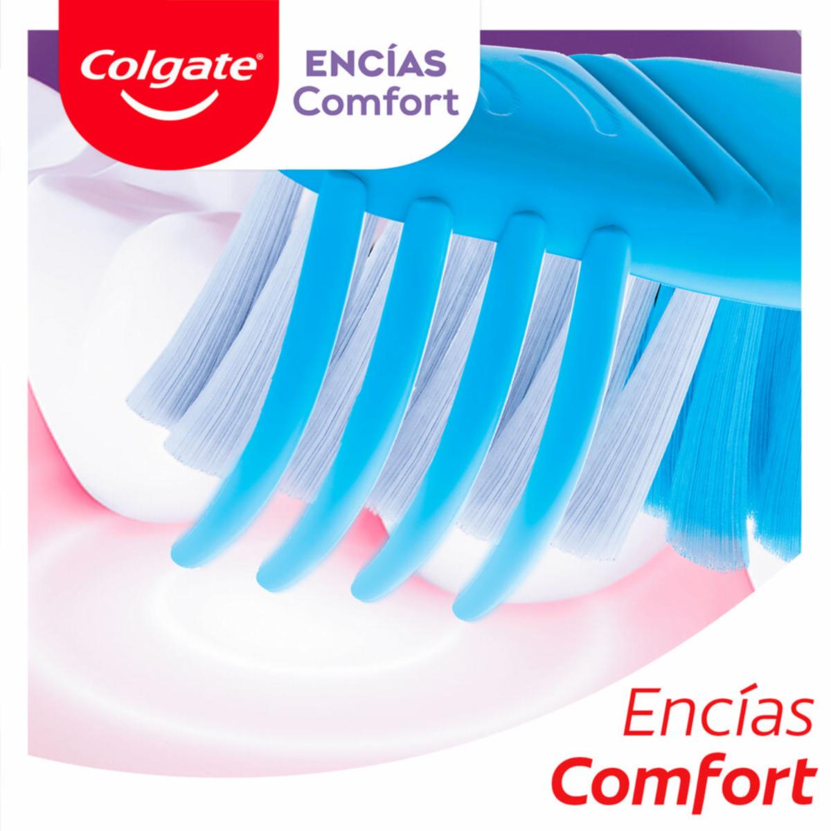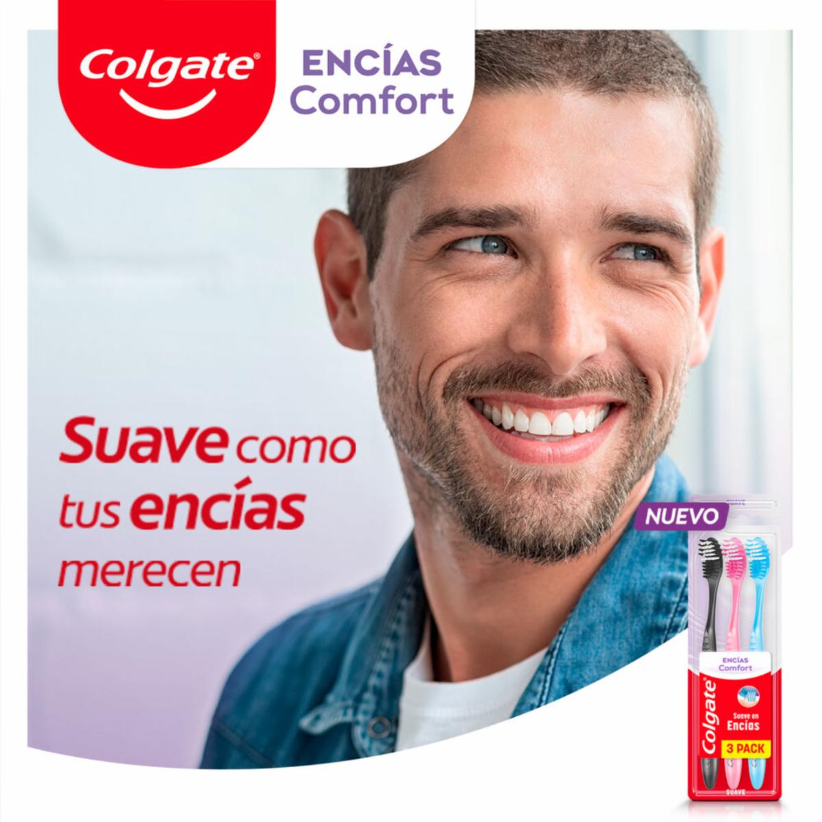 - Masajea suavemente tus encías con el nuevo cepillo de dientes Colgate Encías comfort que a la vez provee una limpieza superior y espumante. Su innovador diseño incluye un mango ergonómico y cerdas suaves.