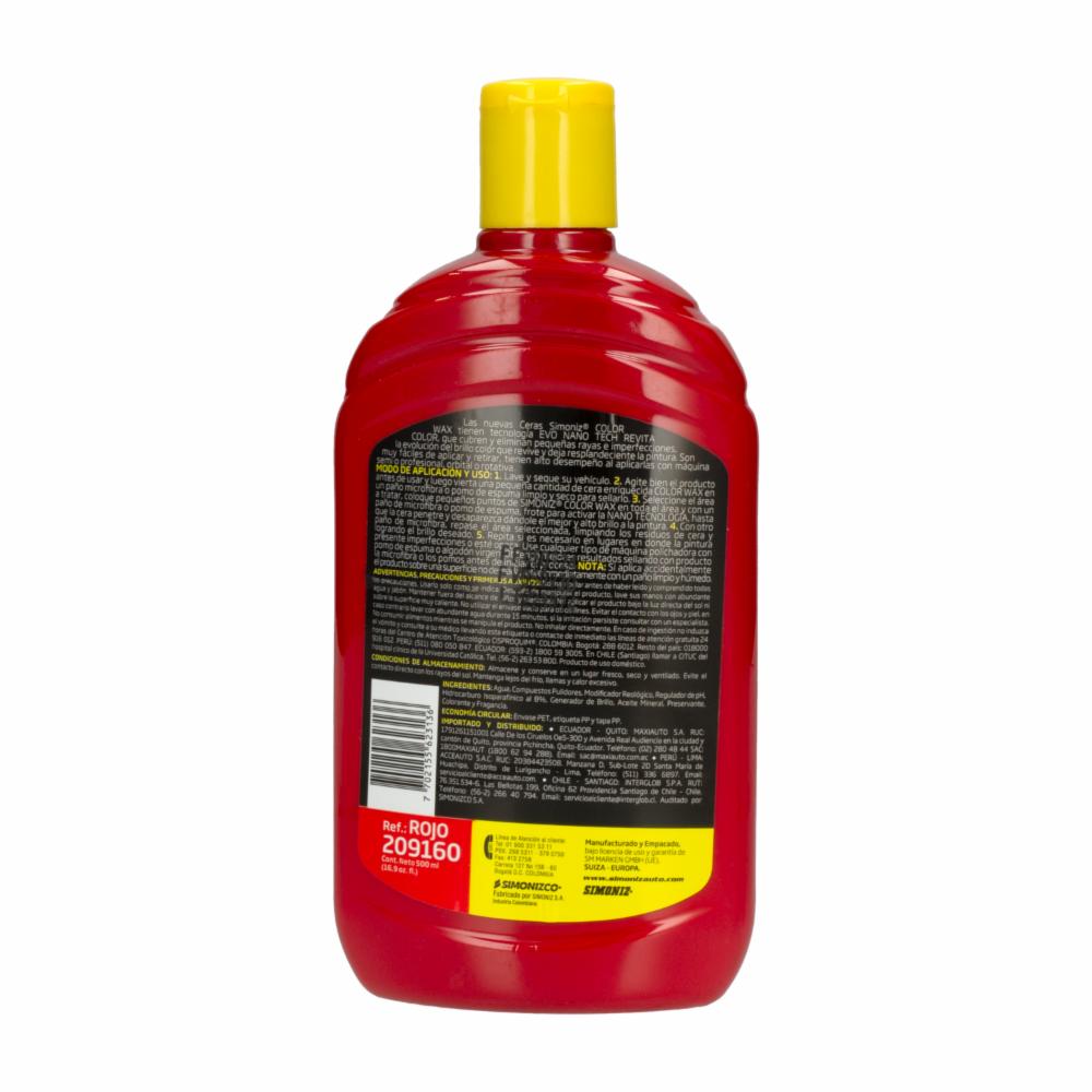 Cera Automotriz Color Wax Rojo SIMONIZ 500 Ml