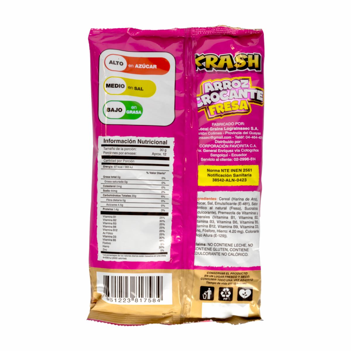 Cereal Sabor A Fresa KRASH 350 G – KRASH. Disponible en nuestros locales. Precio y stock pueden variar según la tienda.