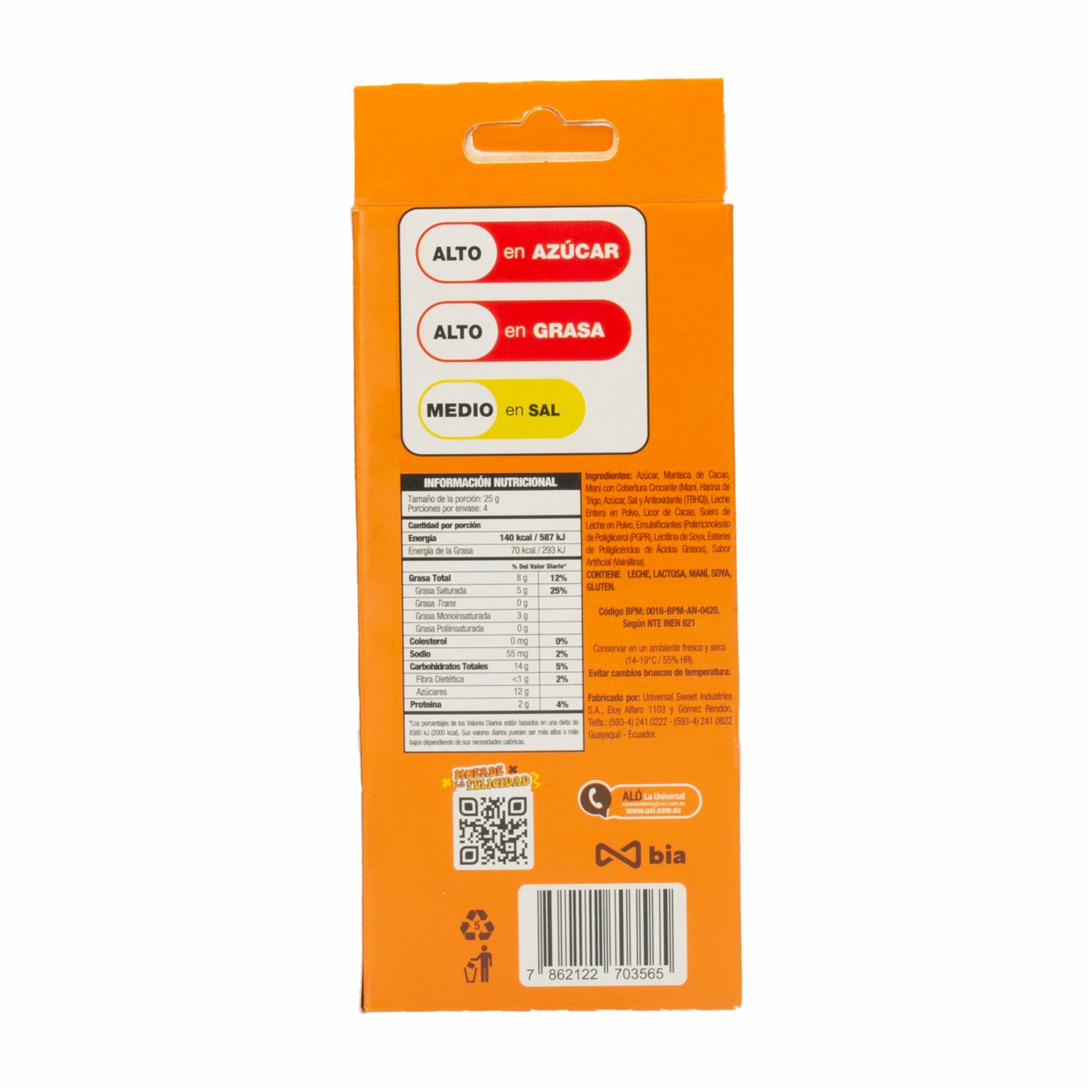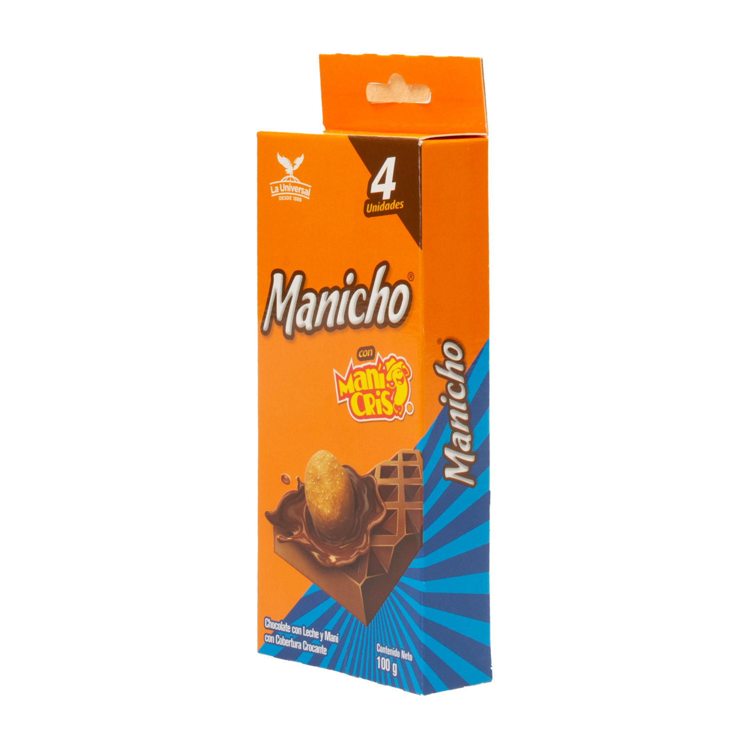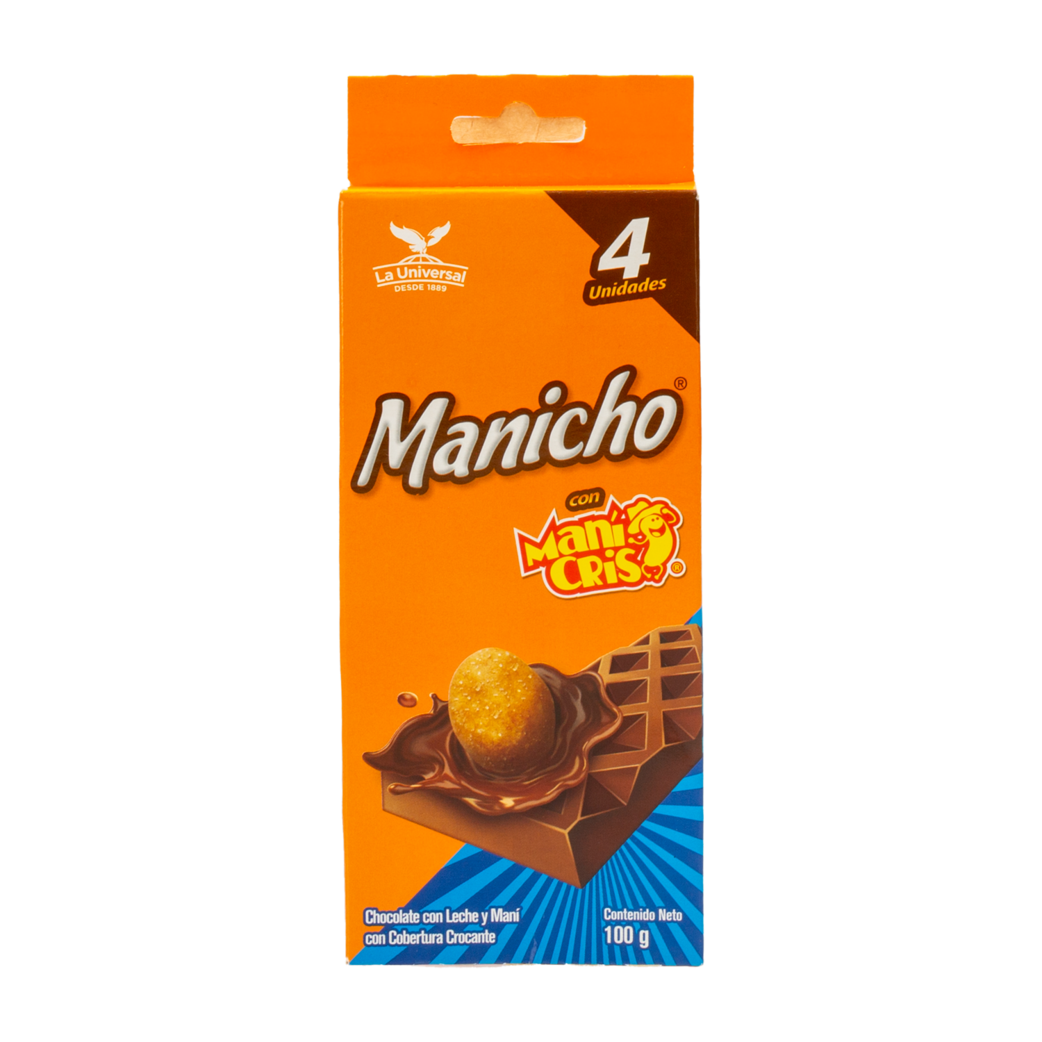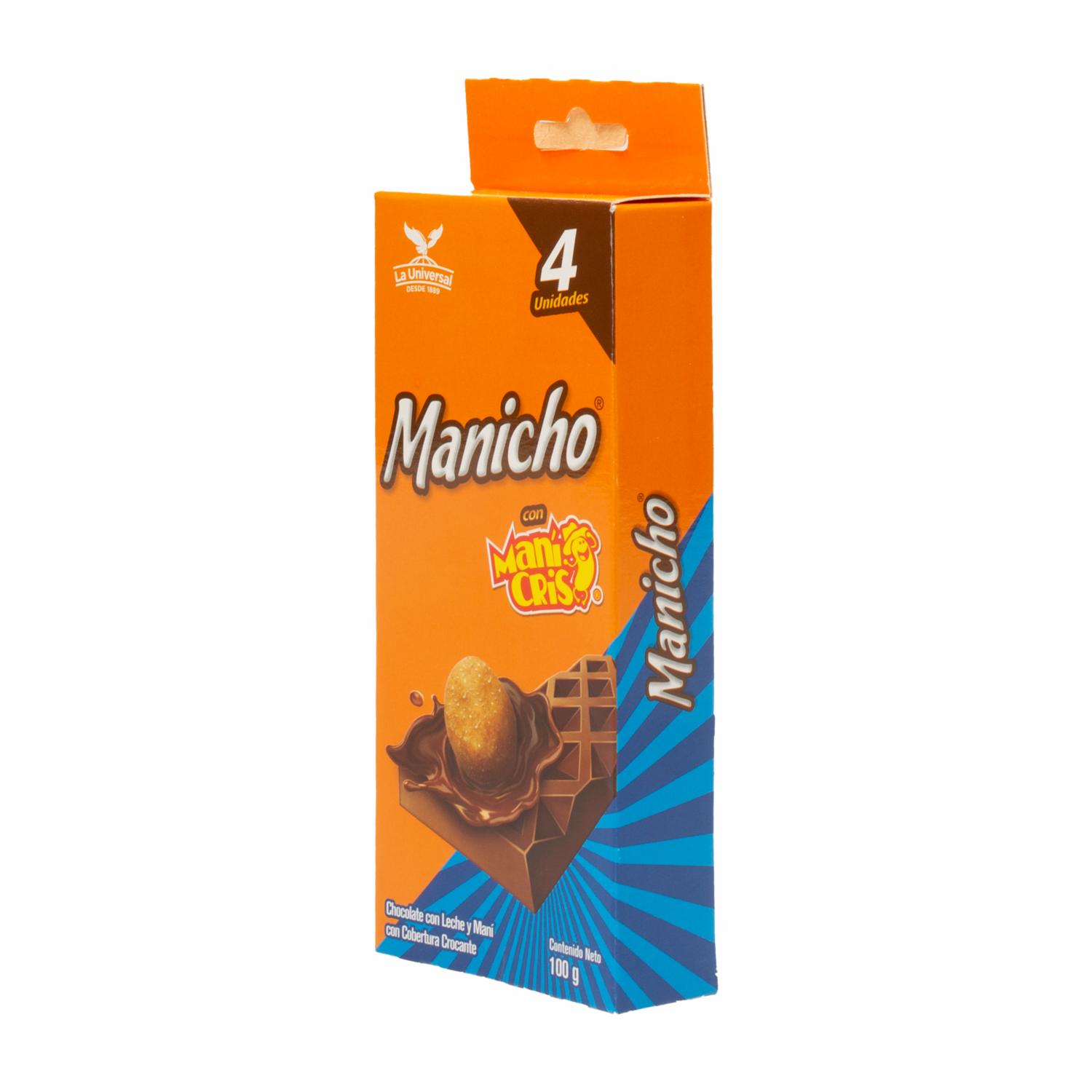 - El chocolate con leche y maní Cris con cobertura crocante de Manicho es un delicioso snack que combina la dulzura del chocolate con el sabor salado y crujiente del maní. Con 100 gramos de exquisitez, es perfecto para disfrutar como un postre, un tentempié o incluso para compartir