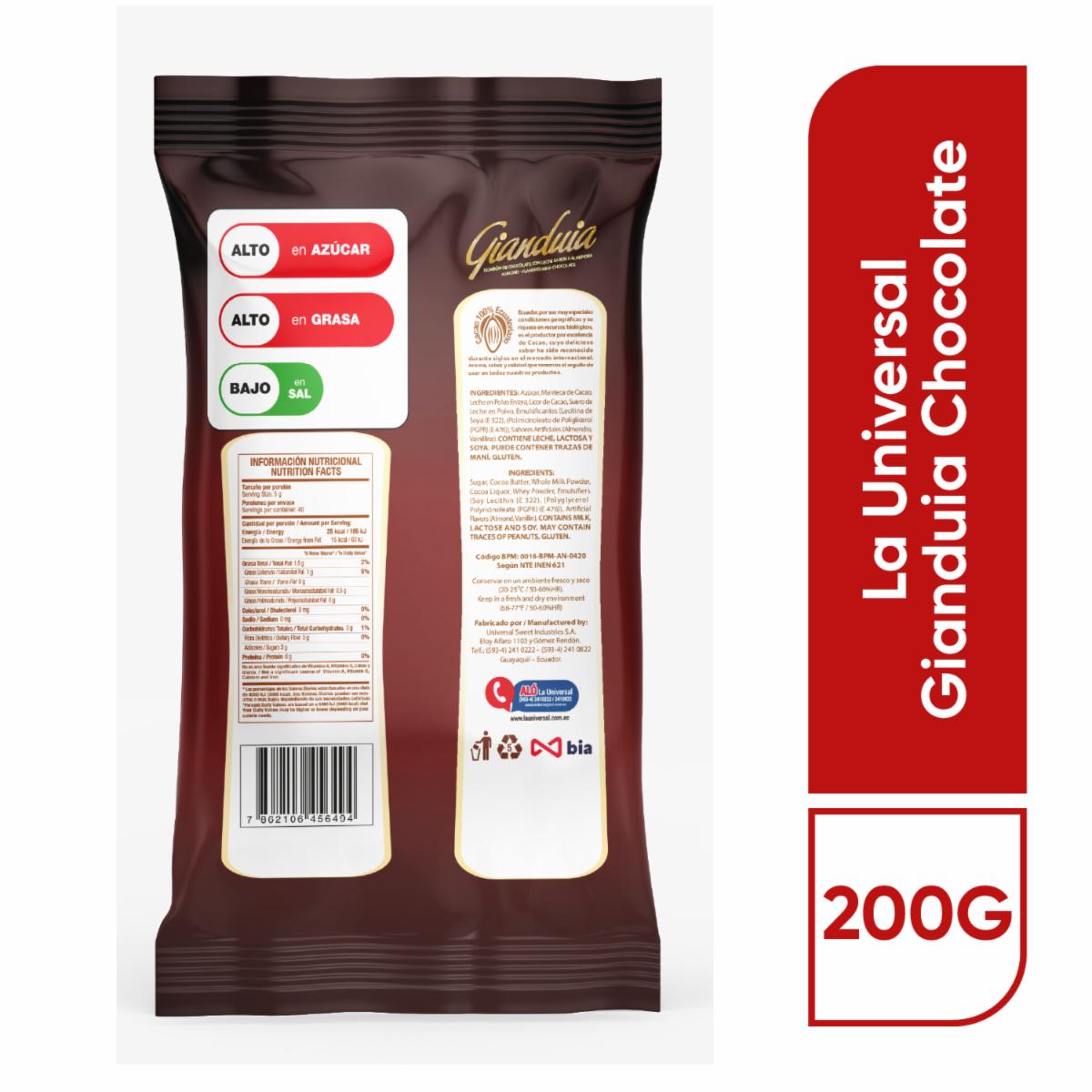 Chocolate Gianduia GIANDUIA 200 G – GIANDUIA. Disponible en nuestros locales. Precio y stock pueden variar según la tienda.