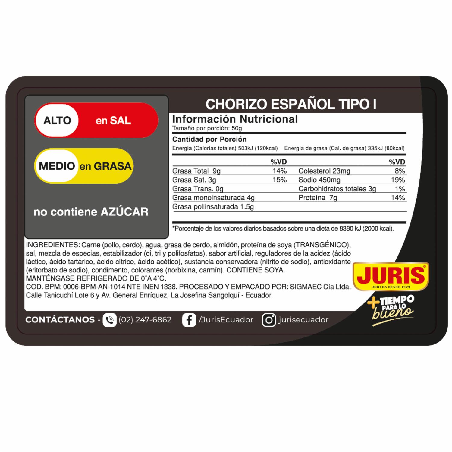 consultando preciosChorizo Español Tipo I JURIS 6 Uds 300 G – JURIS. Disponible en nuestros locales. Precio y stock pueden variar según la tienda.