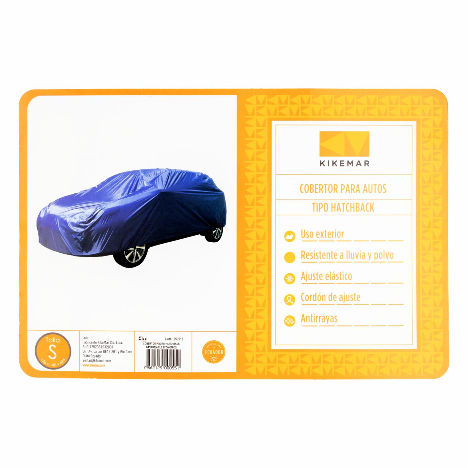 consultando preciosCobertor Impermeable Económico Vehículos Hatchback KIKEMAR Universal – KIKEMAR. Disponible en nuestros locales. Precio y stock pueden variar según la tienda.