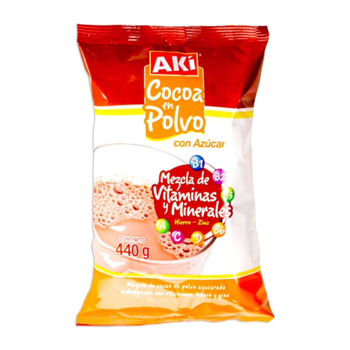 - Descubre El Placer Indulgente Y Los Beneficios Nutritivos Con La Cocoa Con Vitaminas Aki De 440 G. Esta Cocoa Única No Solo Te Brinda El Inconfundible Sabor De La Cocoa, Sino Que También Está Enriquecida Con Vitaminas Esenciales Para Energizar Tus Mañanas Y Endulzar Tus Momentos Más Acogedores